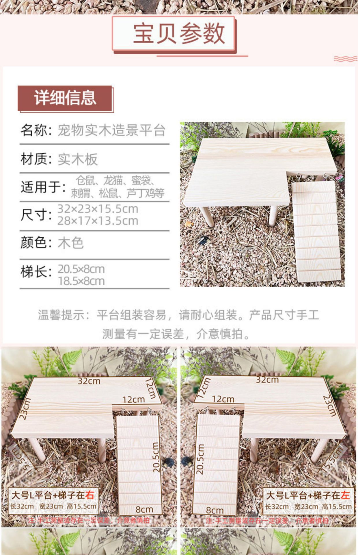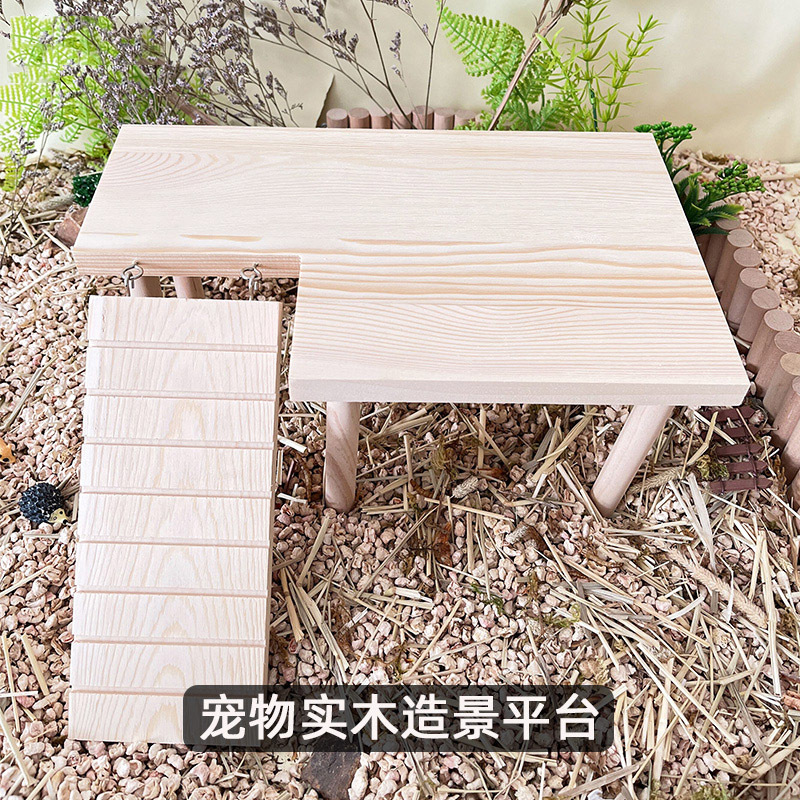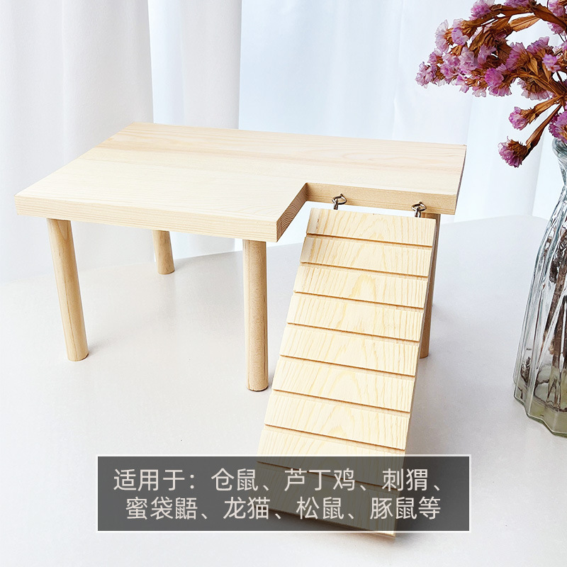 Платформа для хомяков из цельного дерева Двухэтажный рутин Курица Ежик Золотой Шелковый медведь Маленькое домашнее животное L-образный стол с лестницей Пейзажные принадлежности