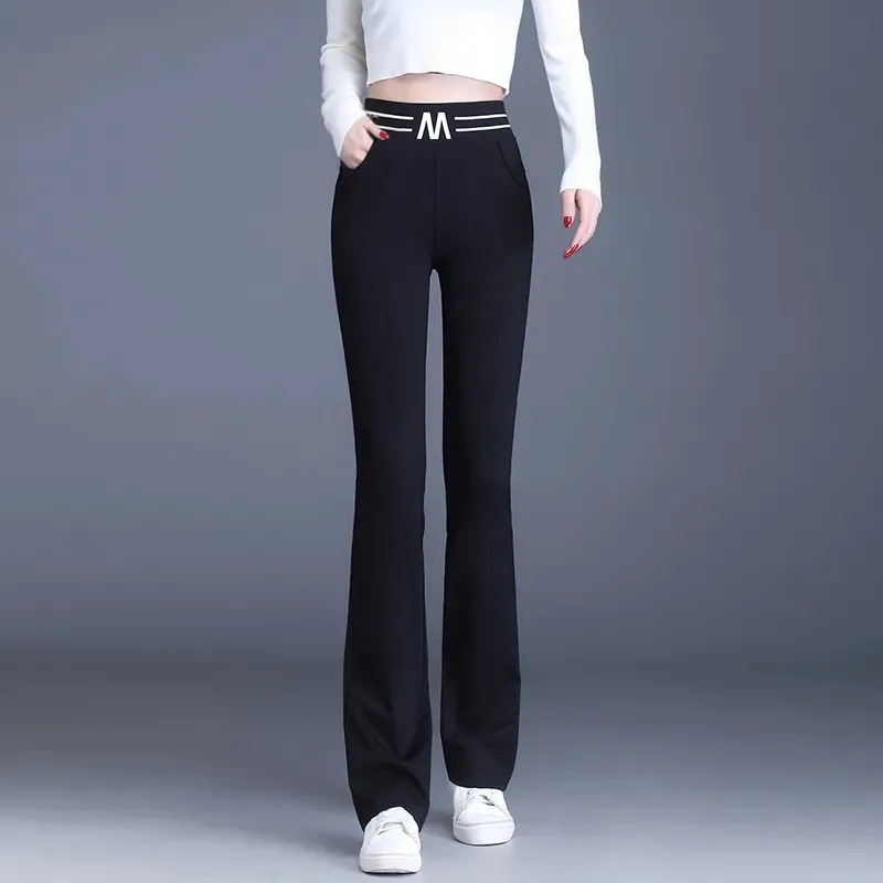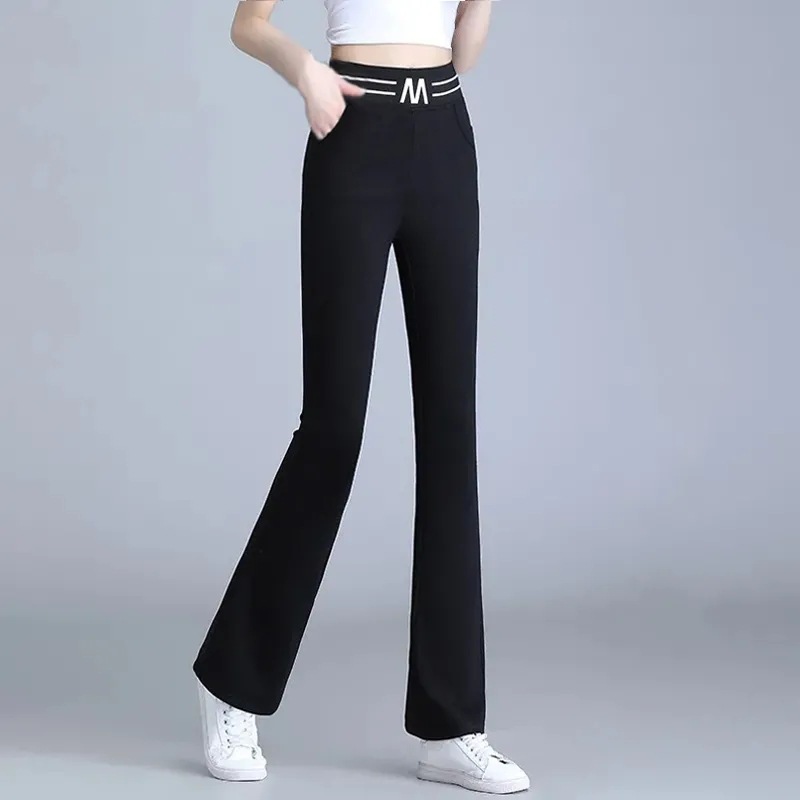 Повседневные микро расклешенные брюки для женщин, весна и осень, Новые укороченные летние тонкие модные эластичные брюки с завышенной талией для девочек среднего возраста