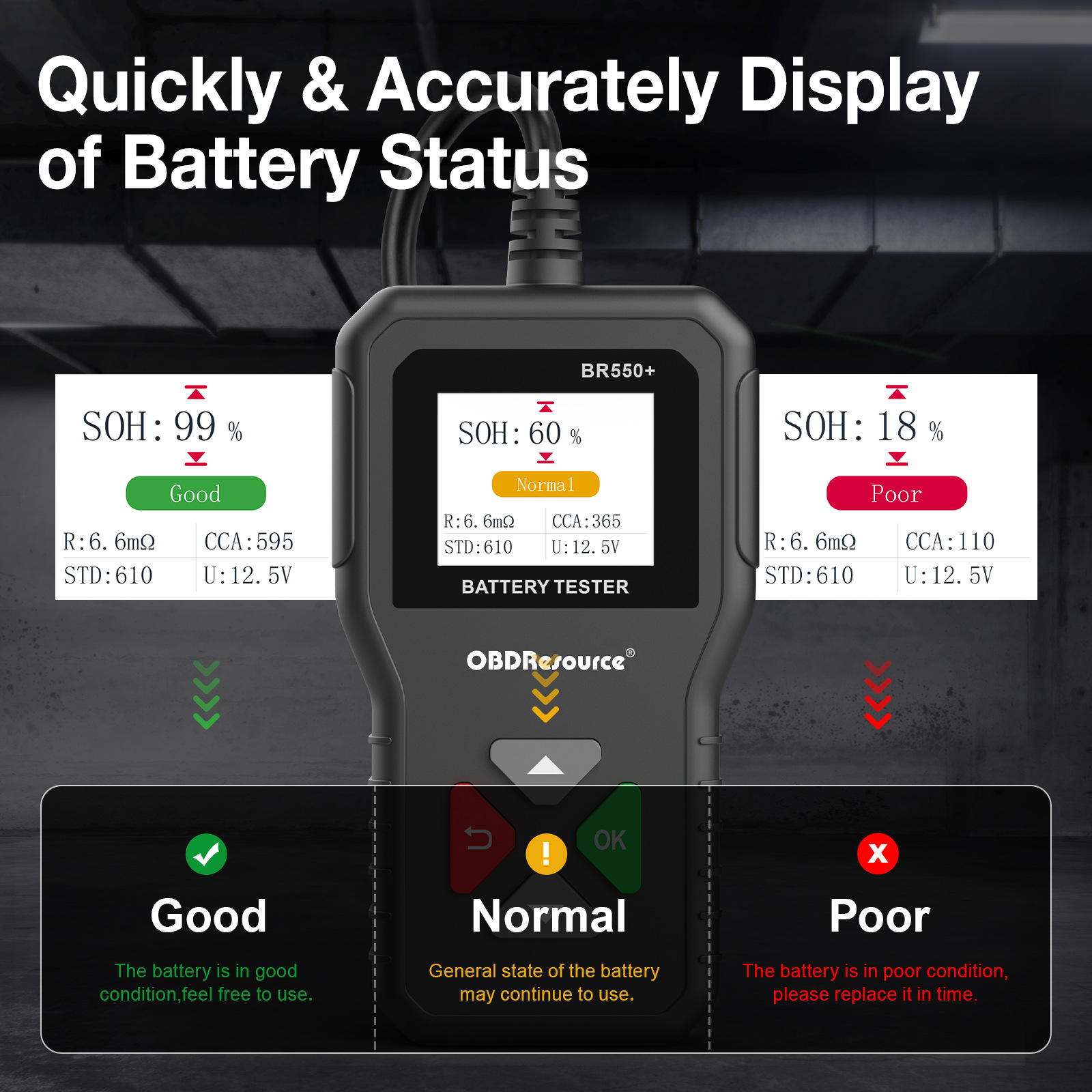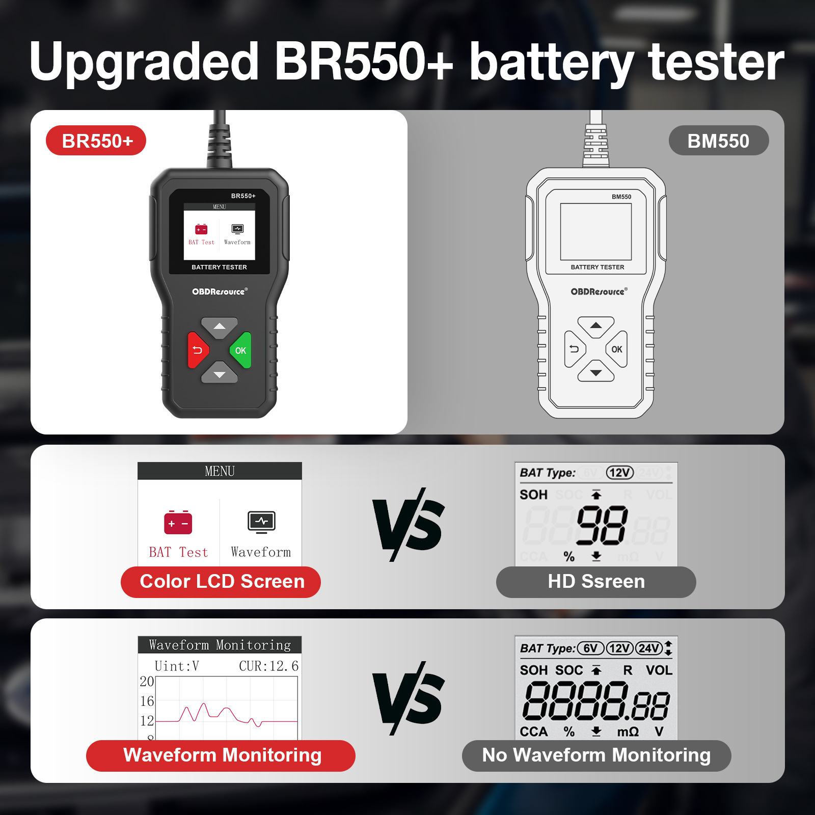 Профессиональный тестер аккумуляторов BM550BR550+ 6V/12V/24V, анализатор состояния и срока службы батарей, три в одном