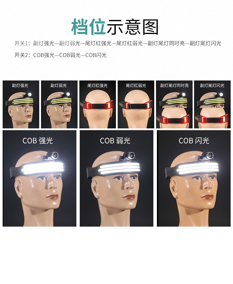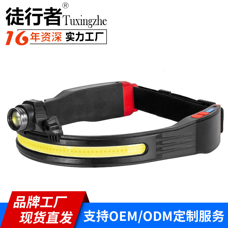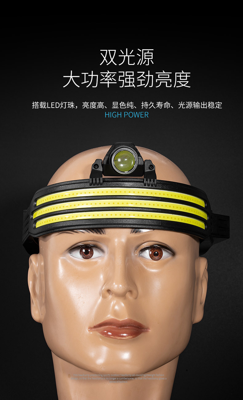 Новый силиконовый двойной источник света COB сильный свет налобный фонарь USB Открытый водонепроницаемый ночная рыбалка лампа бытовой аварийный налобный фонарь