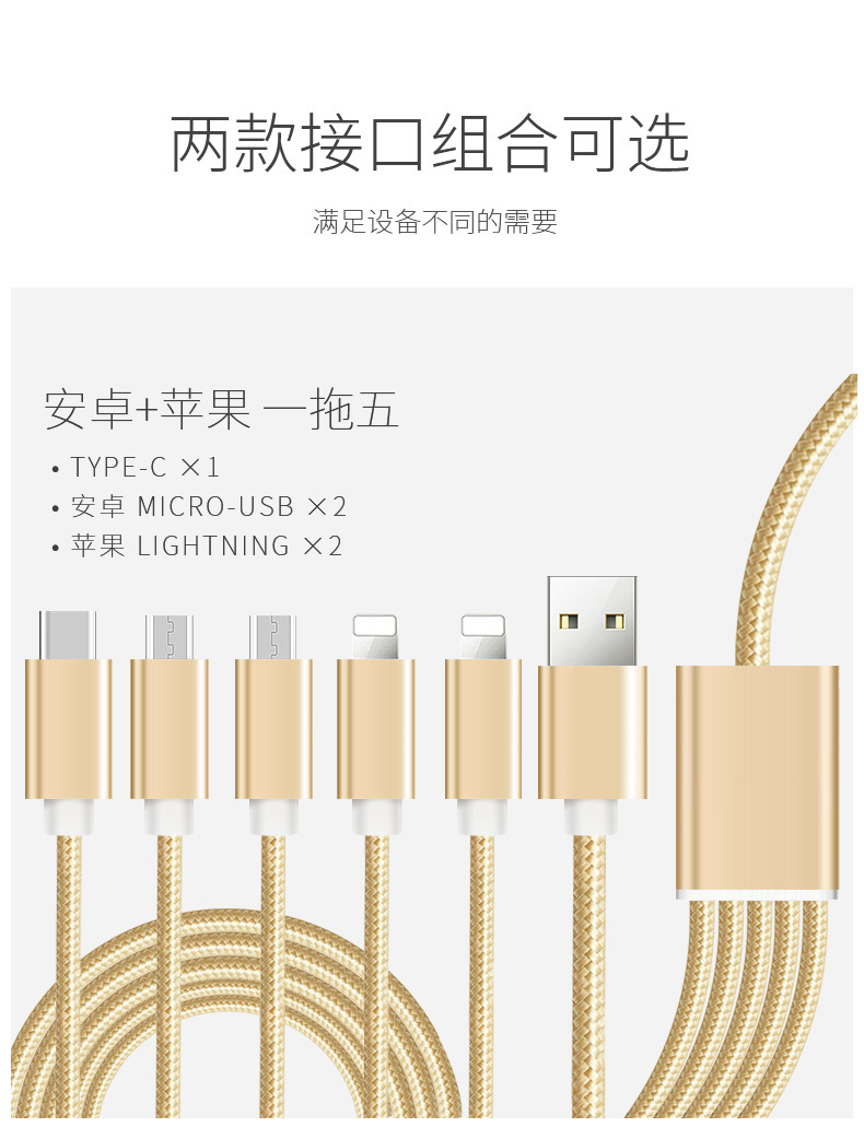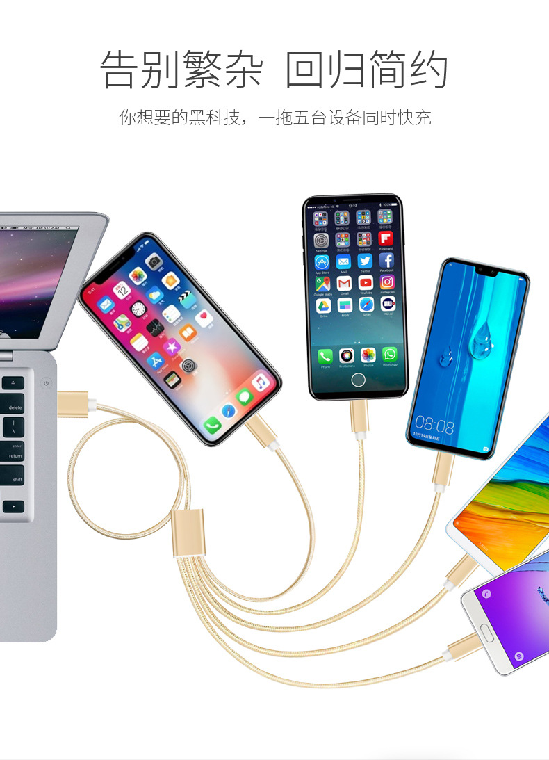 Кабель для передачи данных с несколькими головками один перетащите пять многофункциональный с быстрой зарядкой 5 Применимый для Android кабель для зарядного устройства Apple Huawei один перетащите три