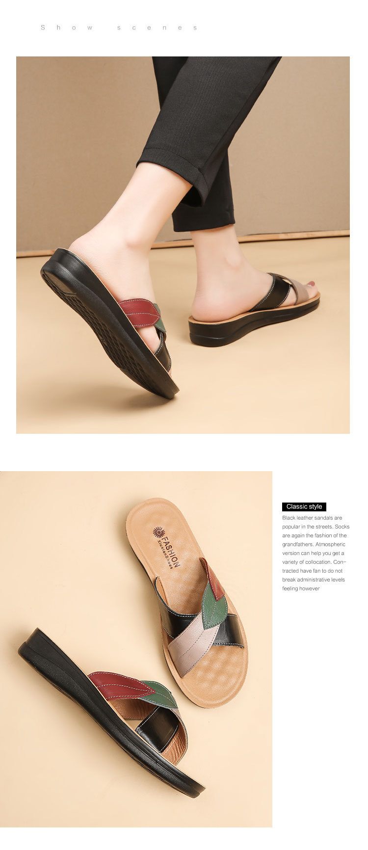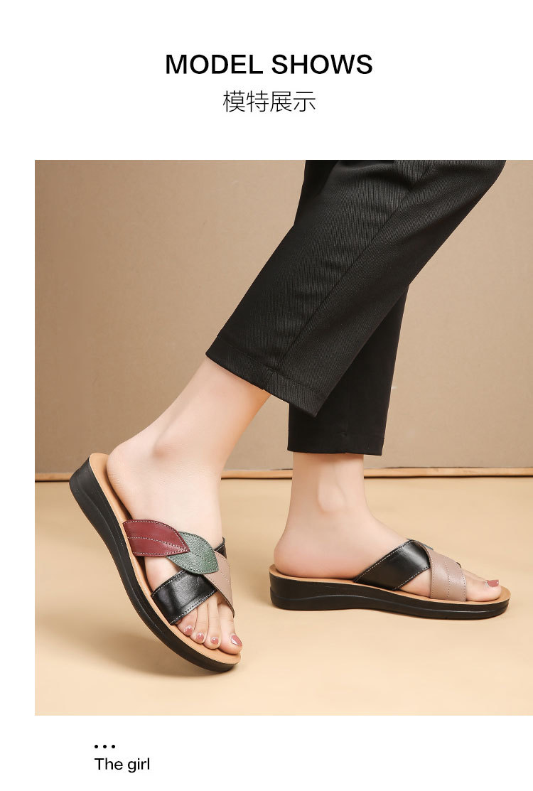 Летние тапочки из натуральной кожи для мам, уличные плоские нескользящие сандалии, легкие из натуральной кожи для женщин среднего и старшего возраста.