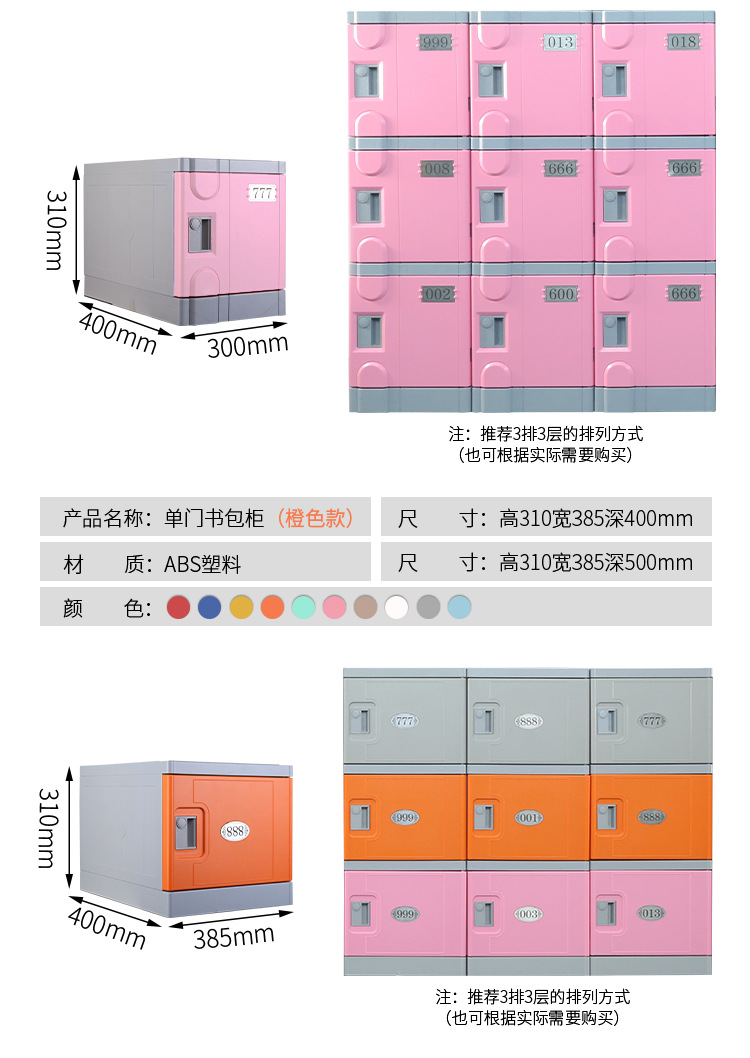 此款商品是以门为单位按门计算价格,价格为一个门的价格,并非是一个组合的价格,商品型号和颜色有多款可选,亲们可根据实地空间、置物需求、场地大小等任意搭配组合;如高度和宽度可根据实地无限延长加高,可根据自己所放物品的大小,选择适合自己的款型,不同的型号也可以随意拼装组合哦。。如需其他锁具请联系客服咨询。(机械锁 转锁扣 每个门10元 电子感应锁每个门+30元,四位密码锁每个门+35元,电子密码锁每个门+65元)凡购买独门柜一律加价百分之二十五,请联系客服改价。量大可优惠,详情请咨询客服 15021032795