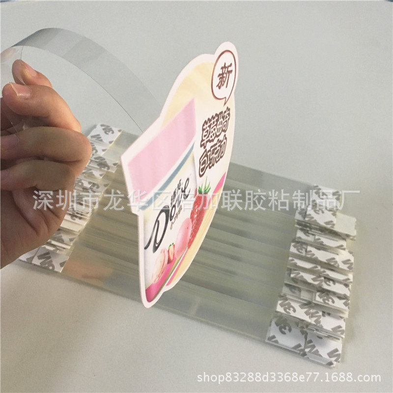 说明:采用进口高透明PET/pvc,两端是3M强粘胶,一头是对广告画面的固定,另外一头是位置的固定,粘在物体上时请先擦干净表面!