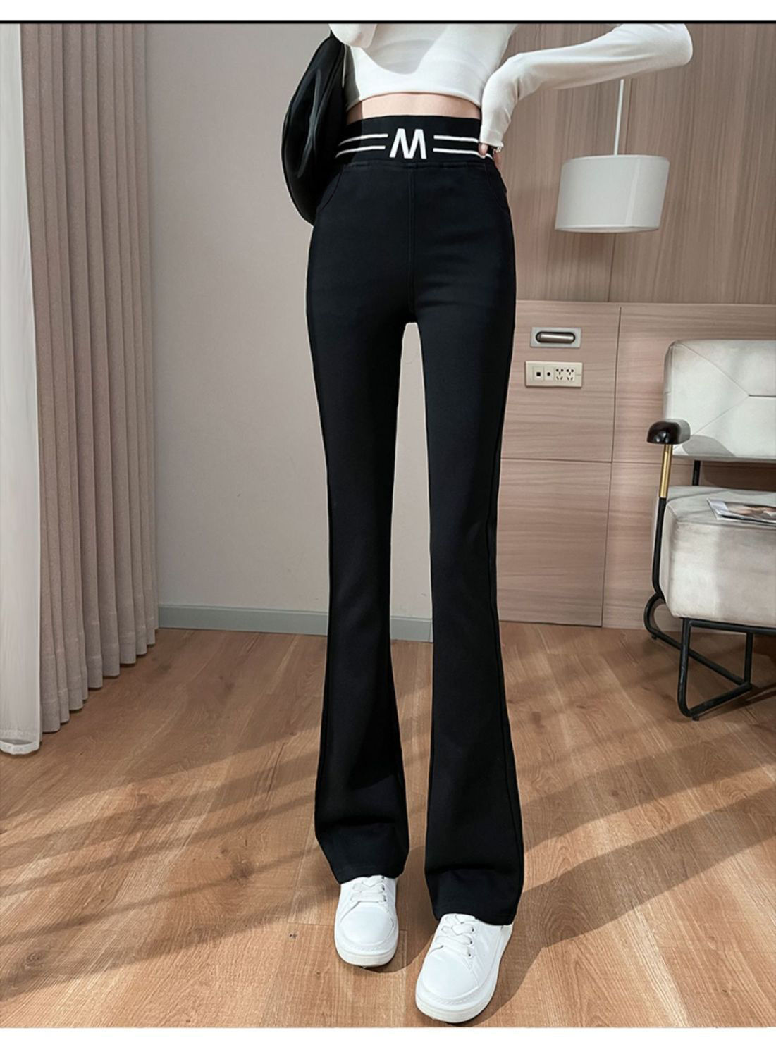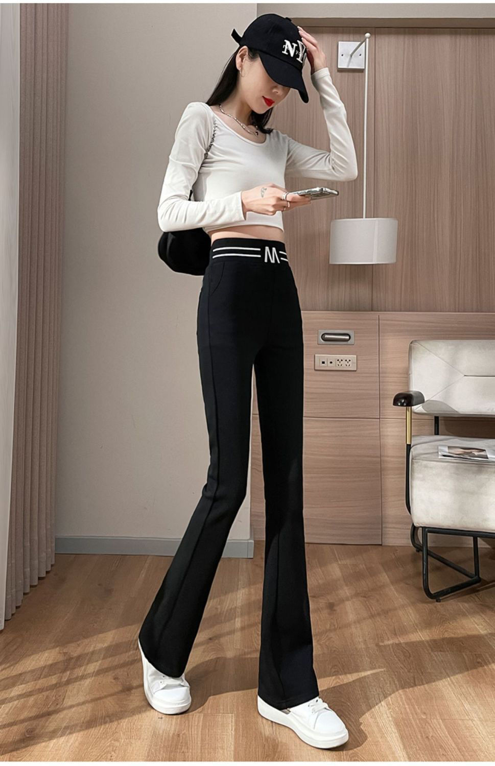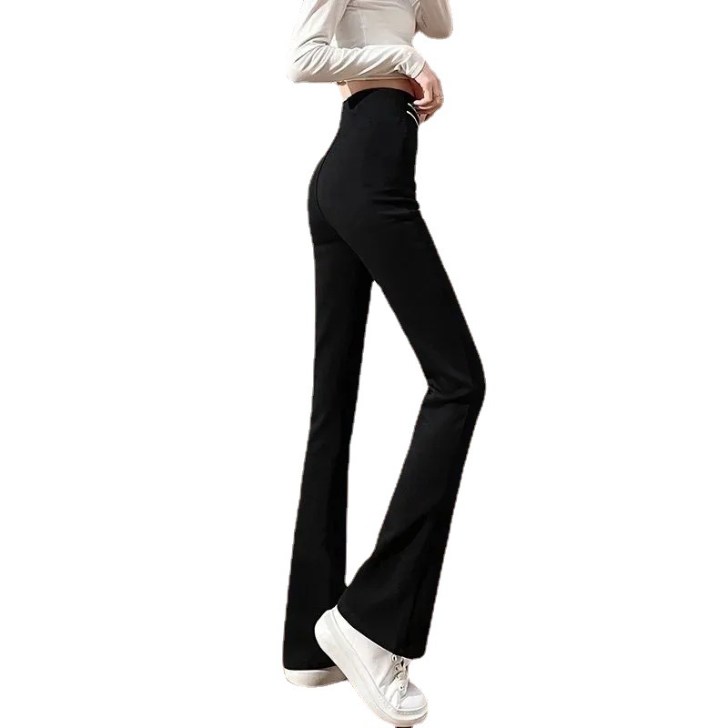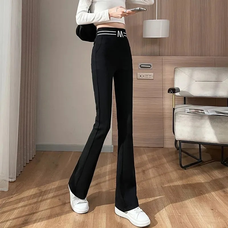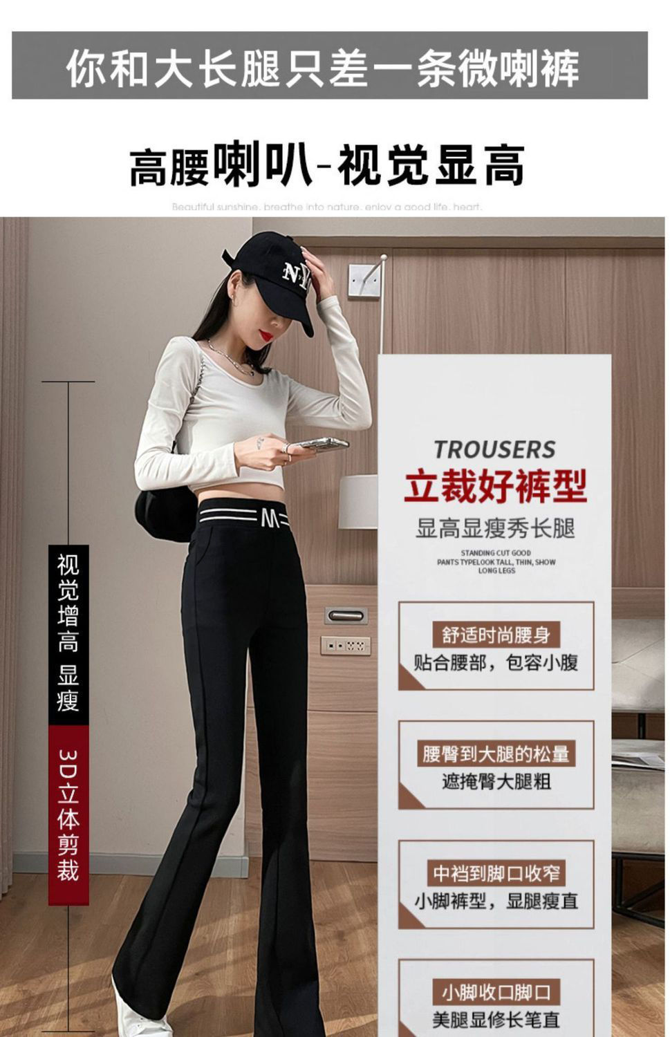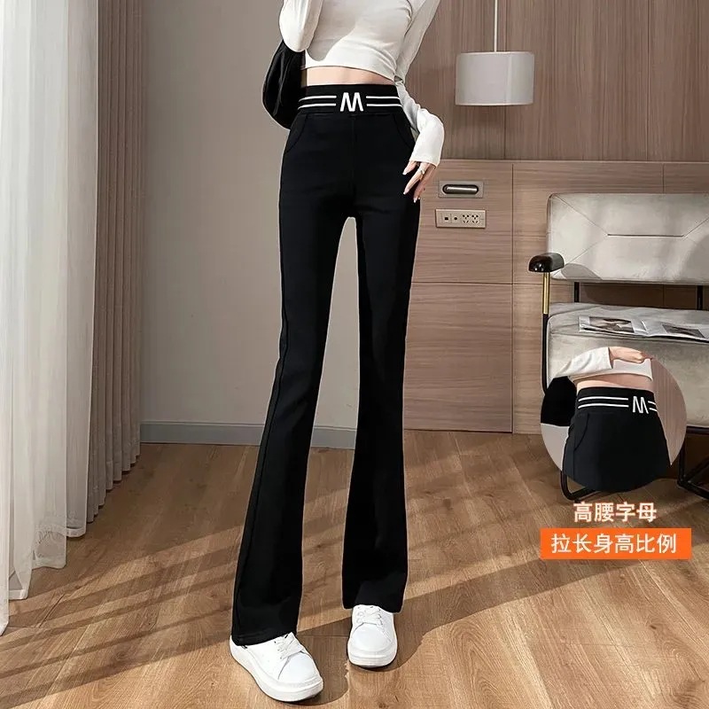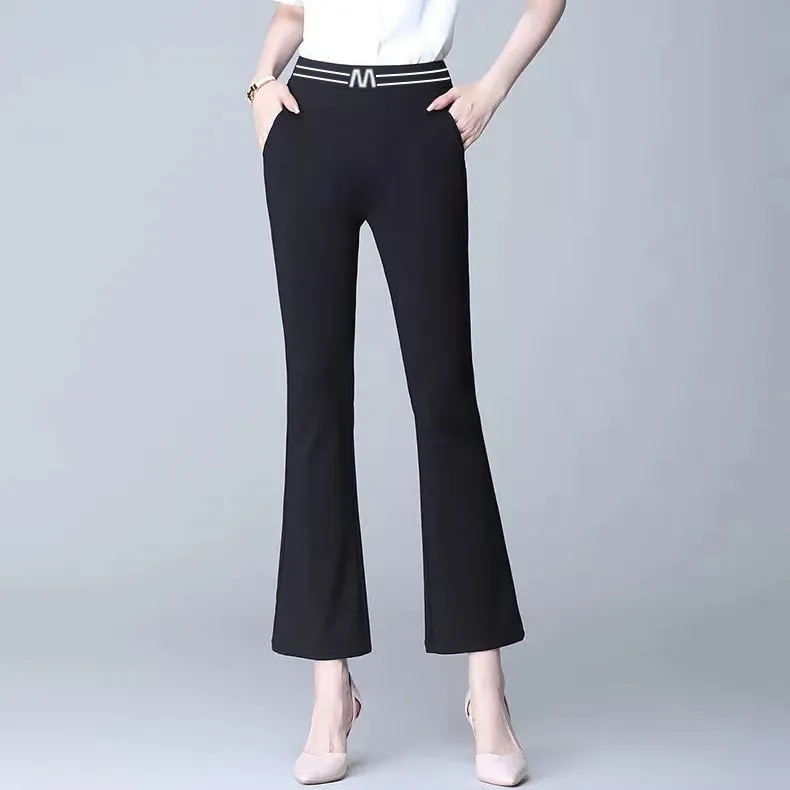 Черные повседневные универсальные модные женские брюки с микро рогами из девяти точек на весну и осень, новые эластичные летние тонкие брюки с высокой талией