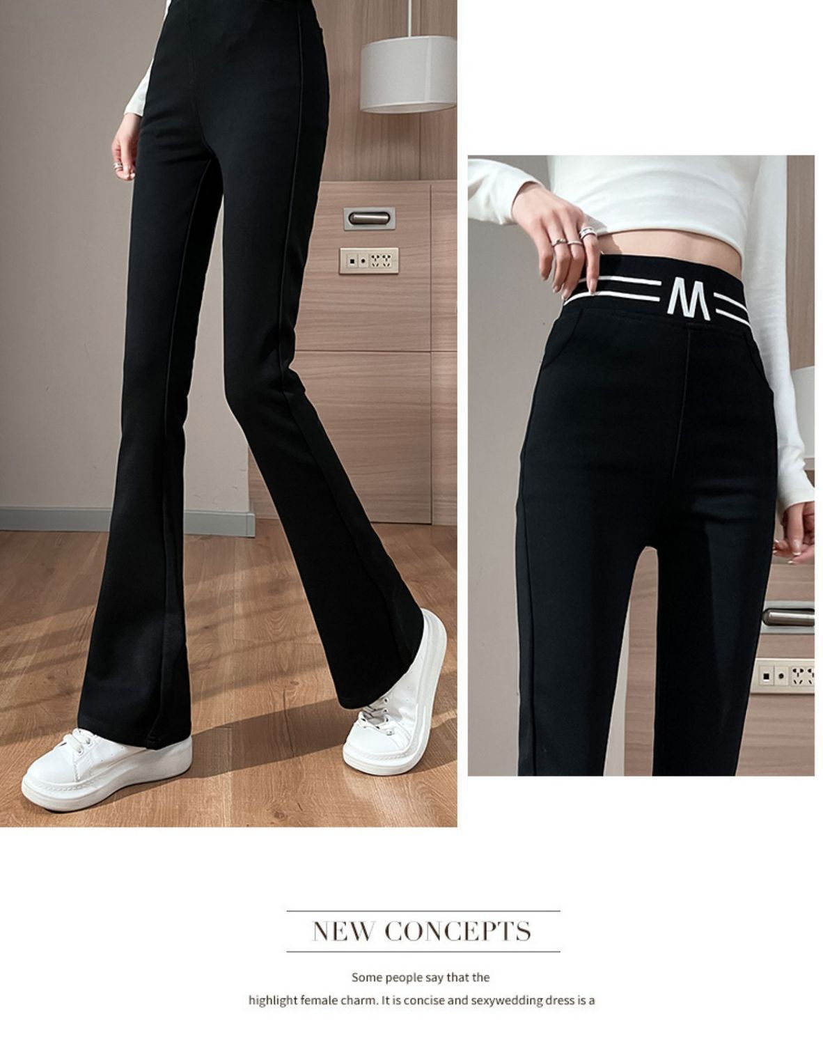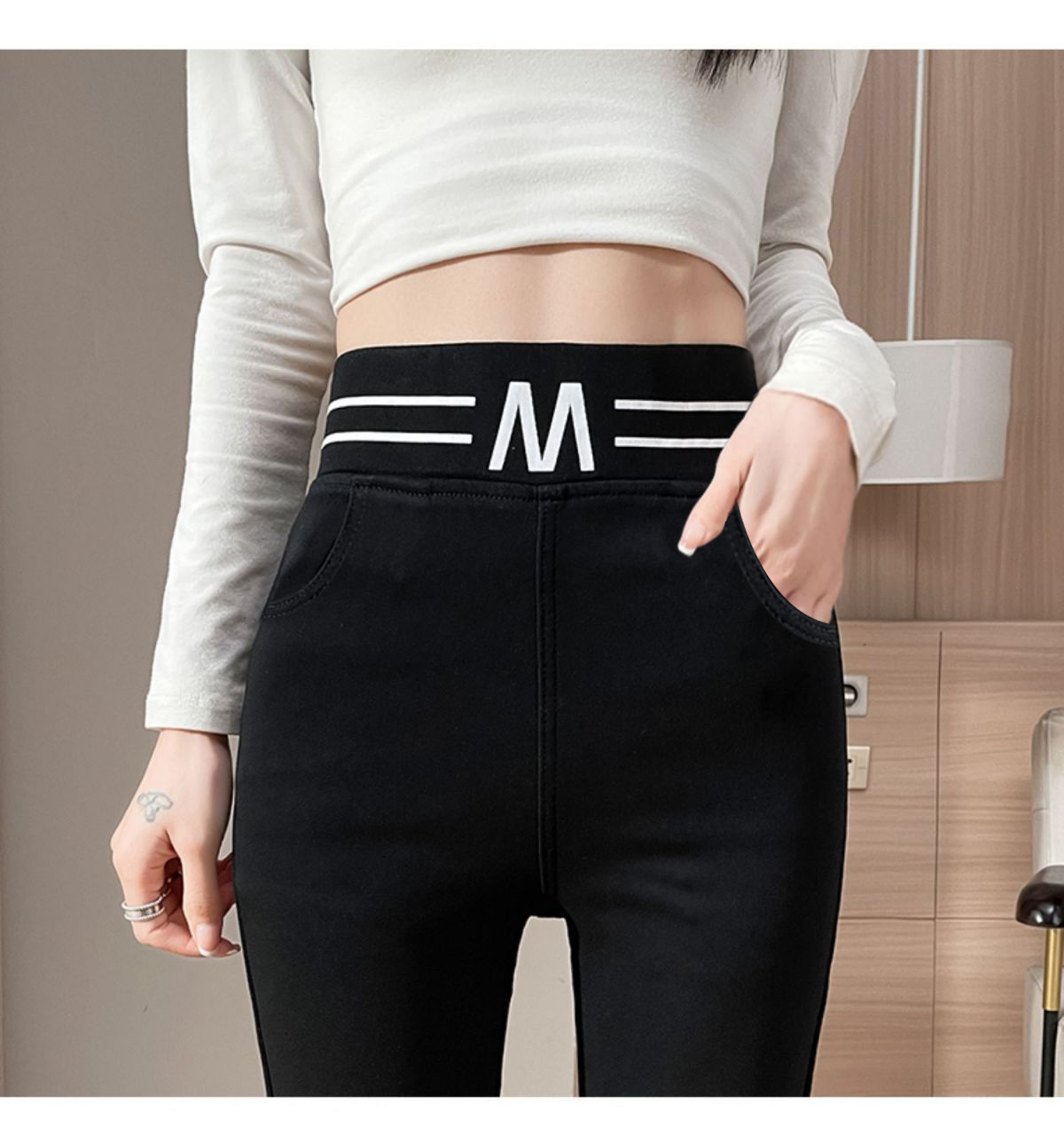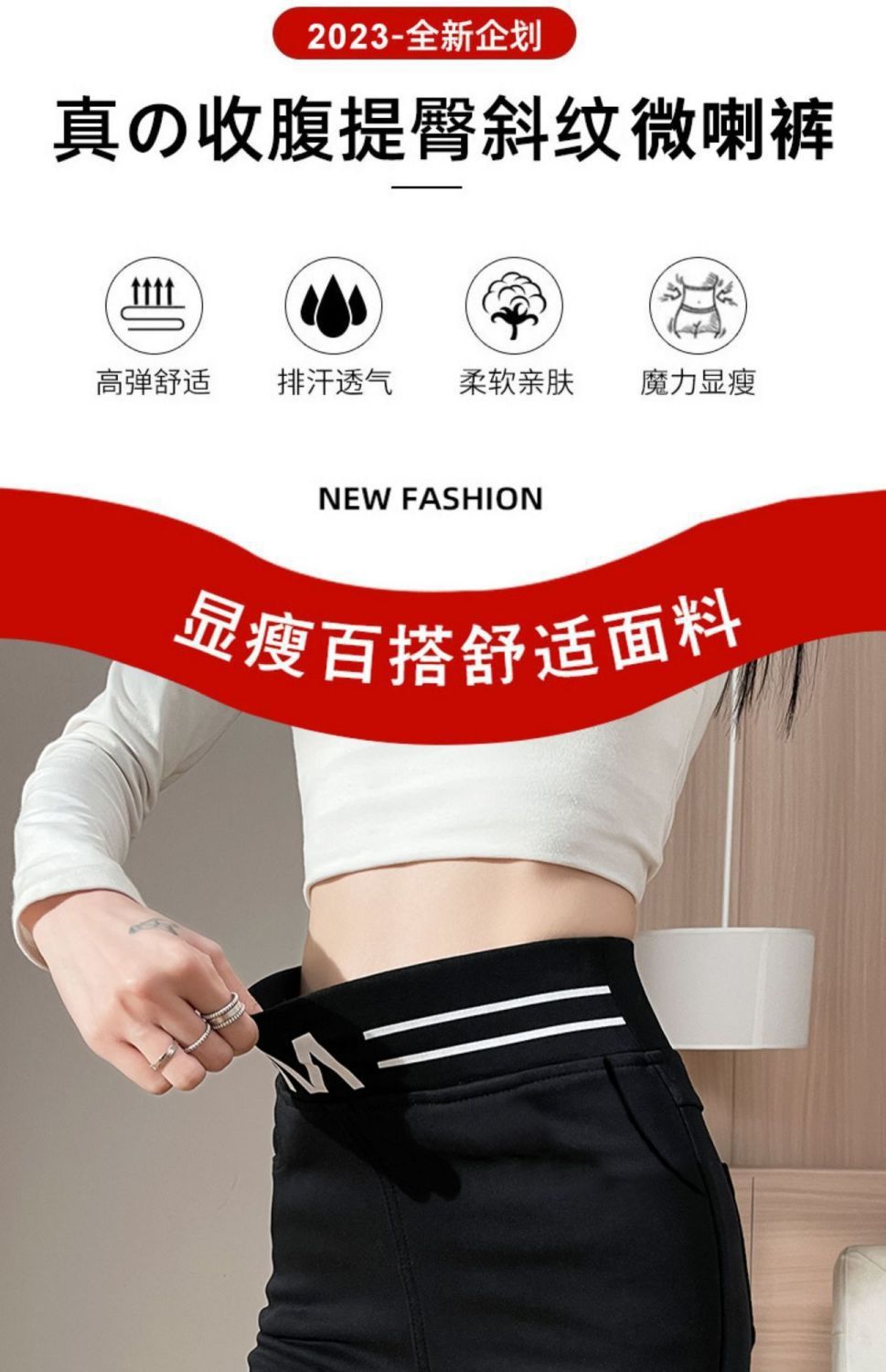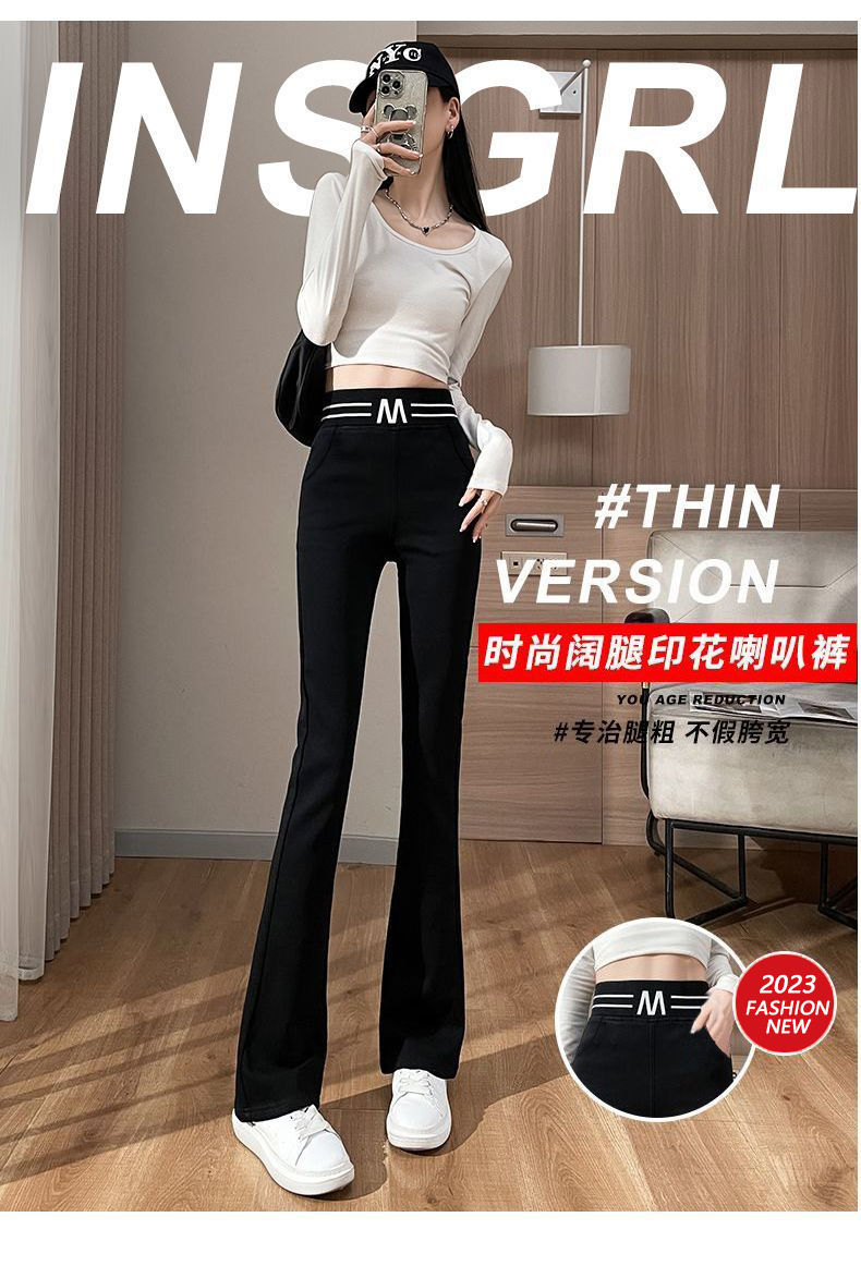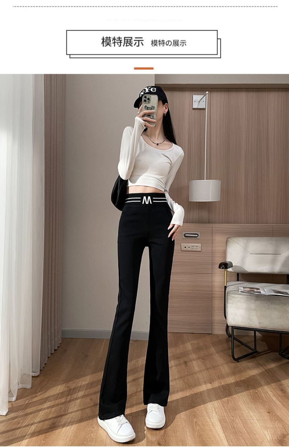 Черные повседневные универсальные модные женские брюки с микро рогами из девяти точек на весну и осень, новые эластичные летние тонкие брюки с высокой талией