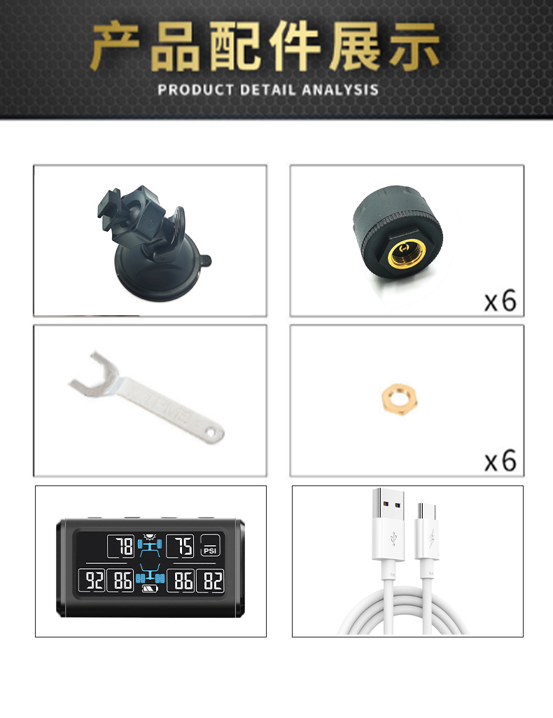 Система контроля давления в шинах для грузовиков, 6-колесная TPMS, мониторинг для автодомов, пикапов, микроавтобусов, легких грузовиков, внешняя беспроводная, высокоточная