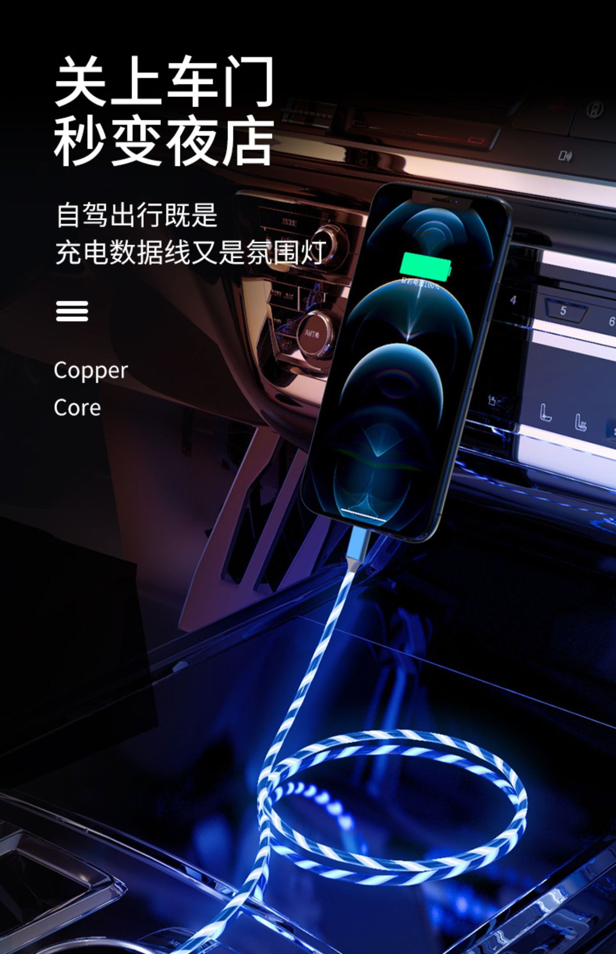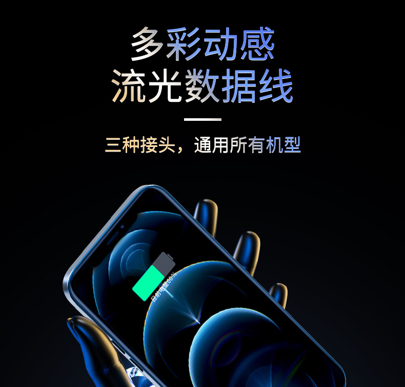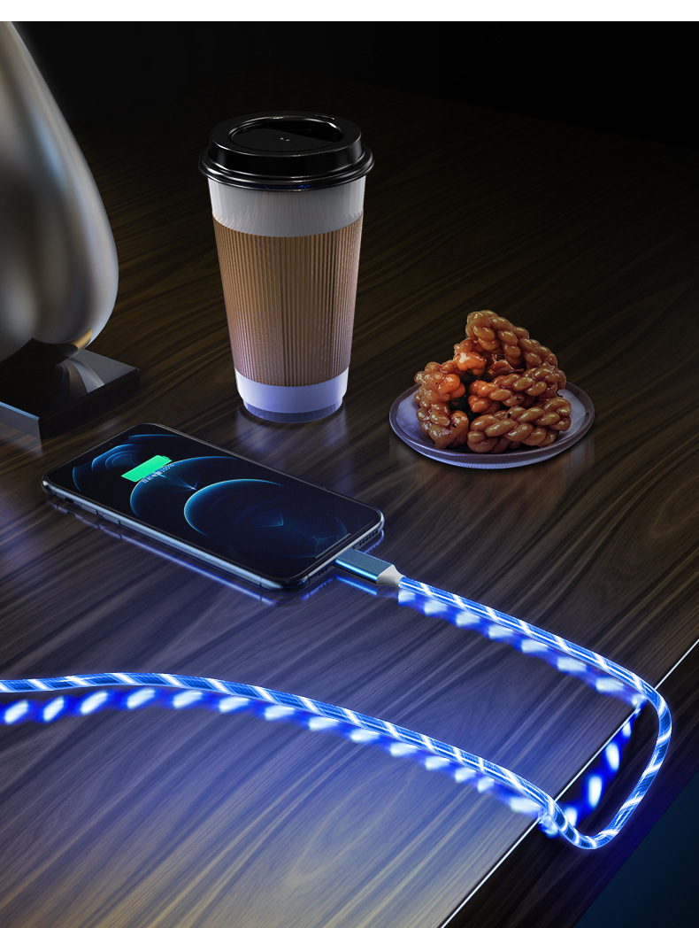 Красочный стример линии передачи данных Быстрая зарядка для линии зарядки OPPO Huawei Android Apple typec автомобильный атмосферный свет