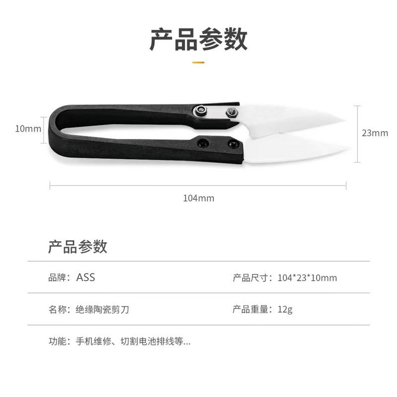 Изолированные нержавеющие керамические ножницы для ремонта мобильных телефонов ножницы с разрезной проволокой черные швейные ножницы с резьбовой головкой U-образные ножницы для маленькой пряжи