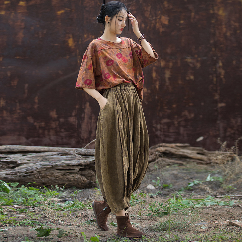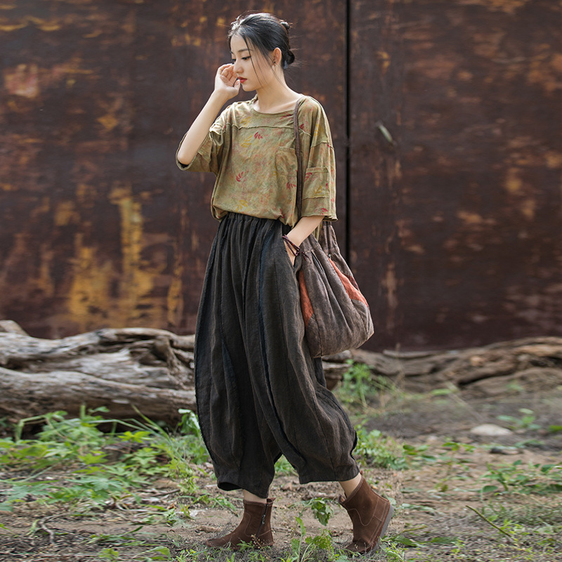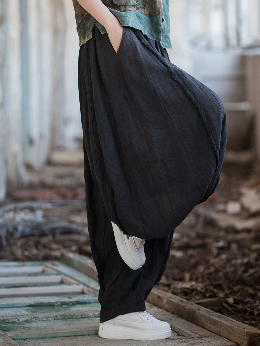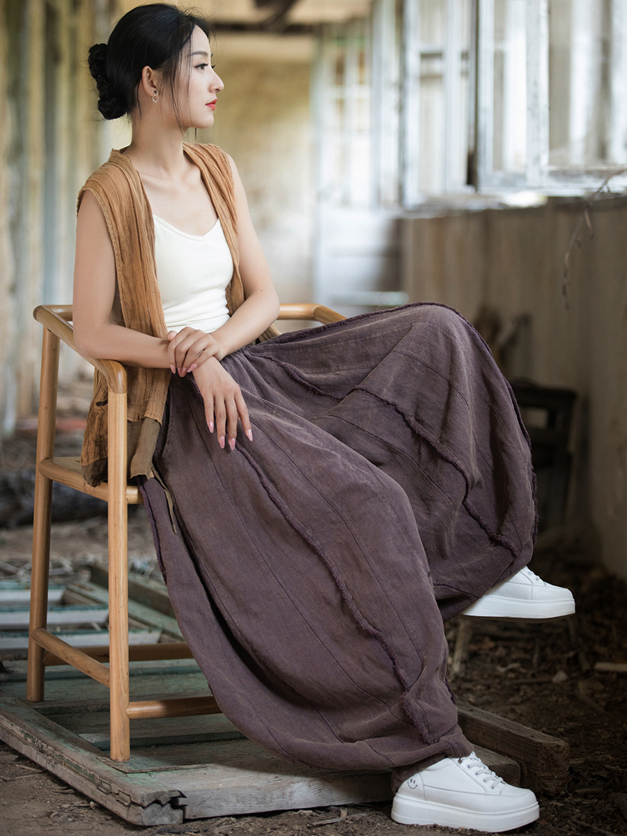 Женские повседневные длинные брюки из хлопка и льна, коллекция Осень/Зима 2025, новинка, с эффектом песочной стирки, начёсом, в стиле пэчворк, с эффектом потертости, 32 элемента, модель «Тыква»