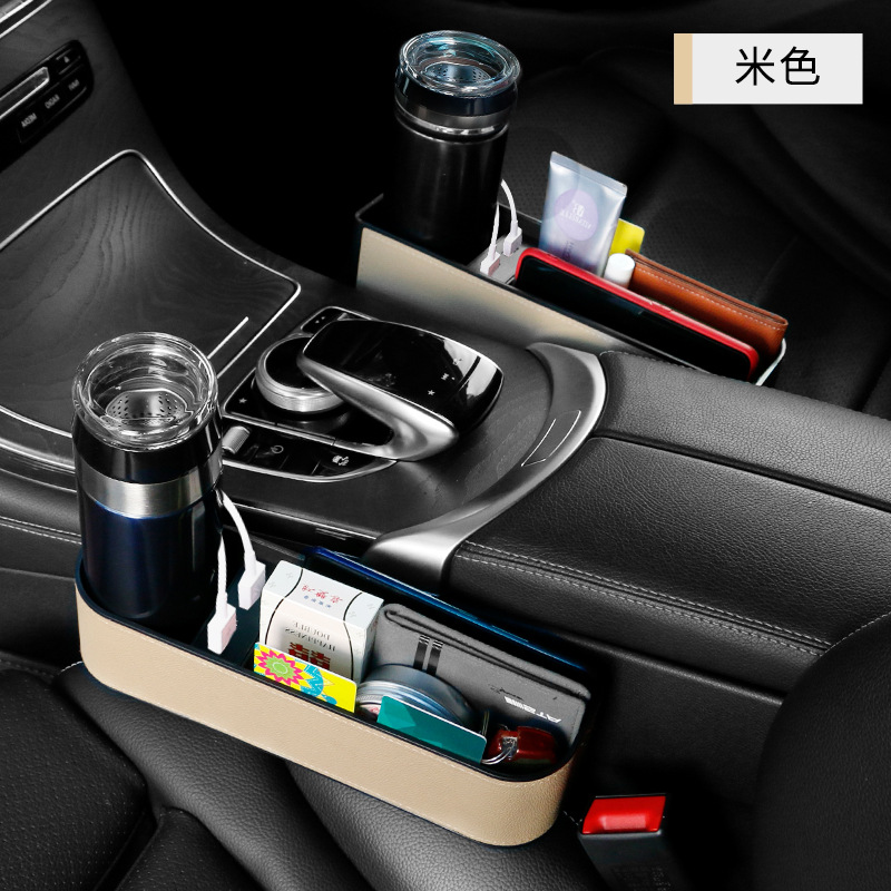 Щель автомобильного сиденья держатель стакана для воды Автомобильный двойной USB-ящик для хранения Кожаная коробка для хранения зарядки подставка для напитков