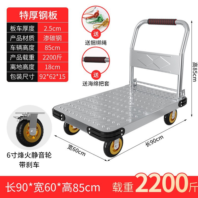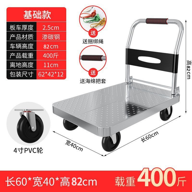 Складная портативная тележка для перевозки товаров, тележка для бытовой экспресс-доставки, коммерческая четырехколесная тележка с плоской платформой из стальной пластины для склада