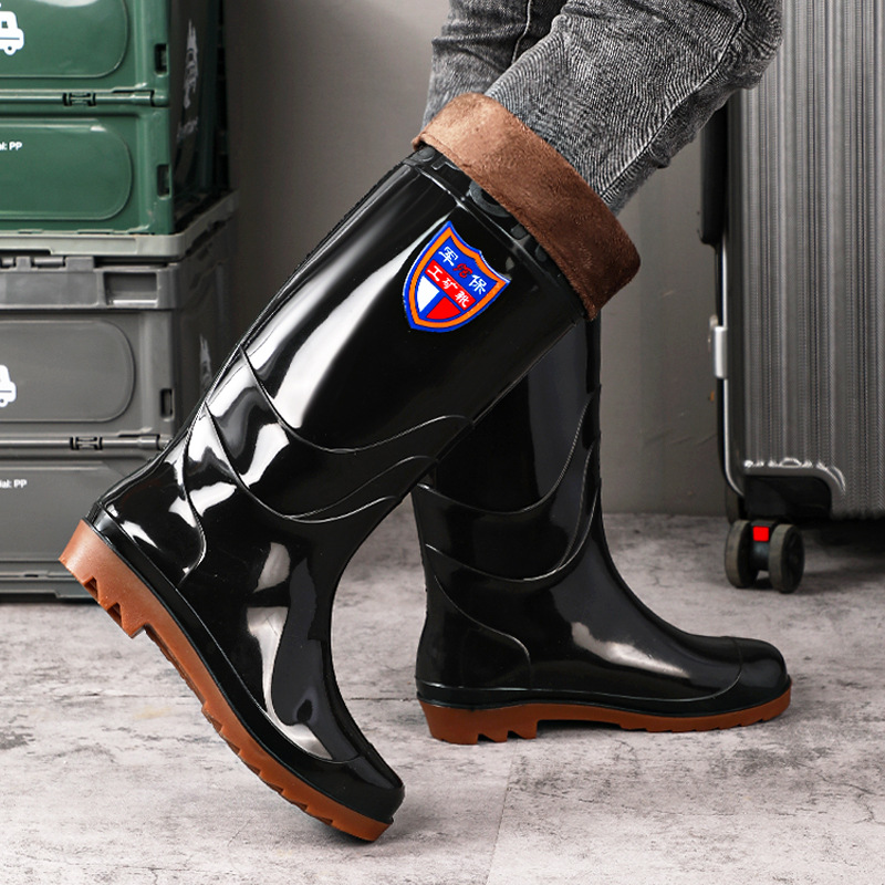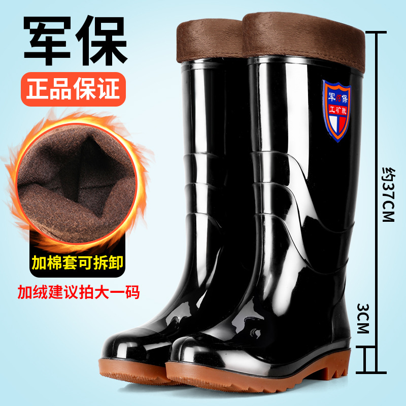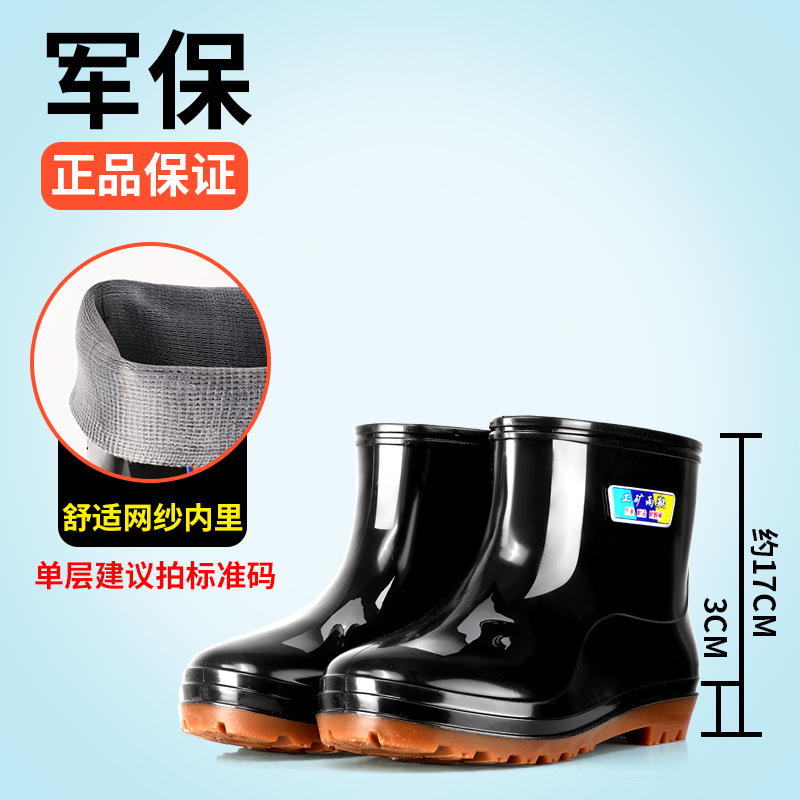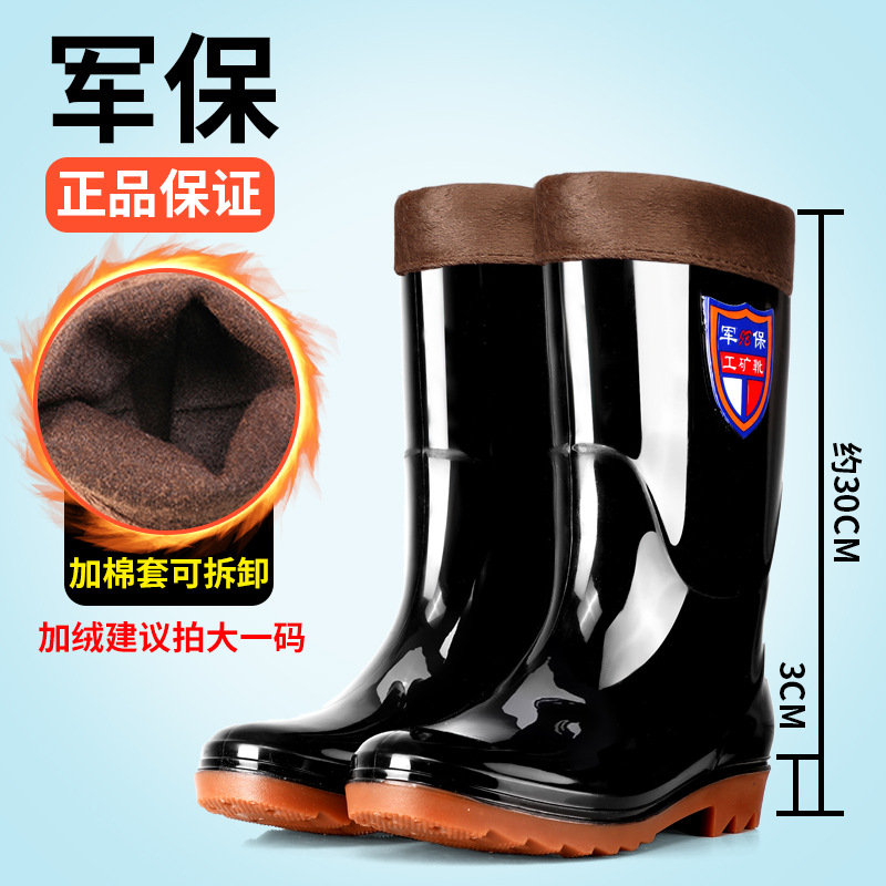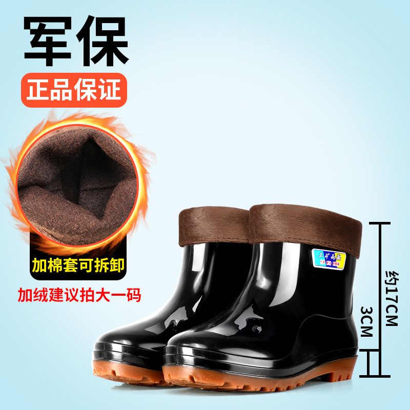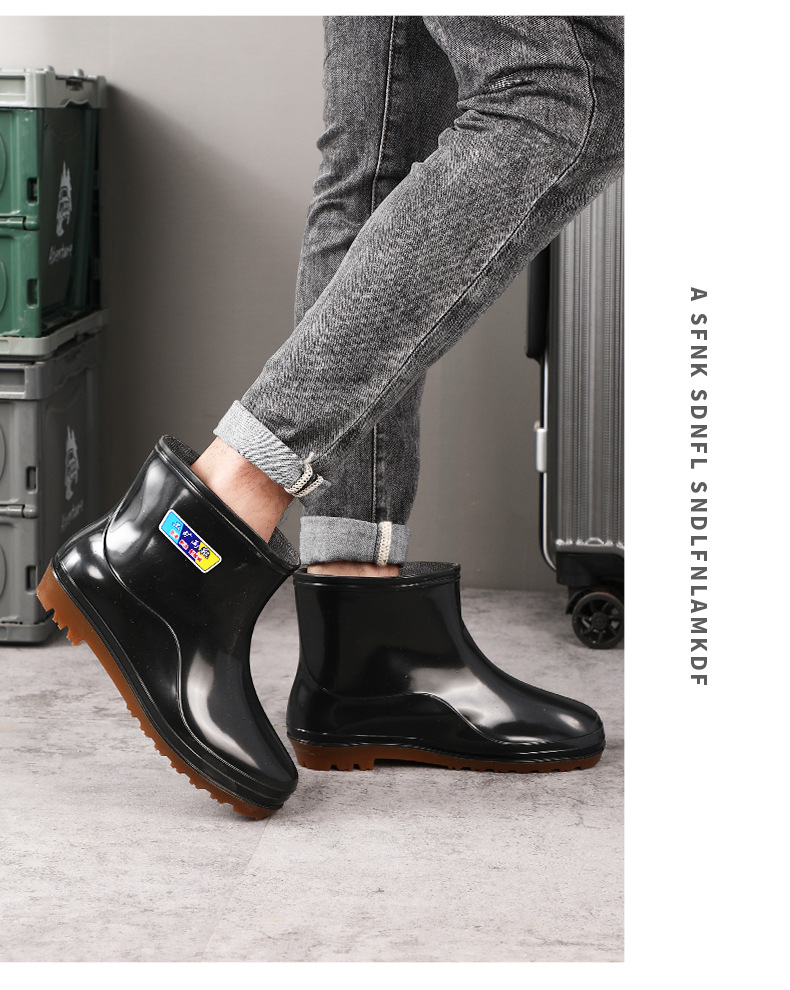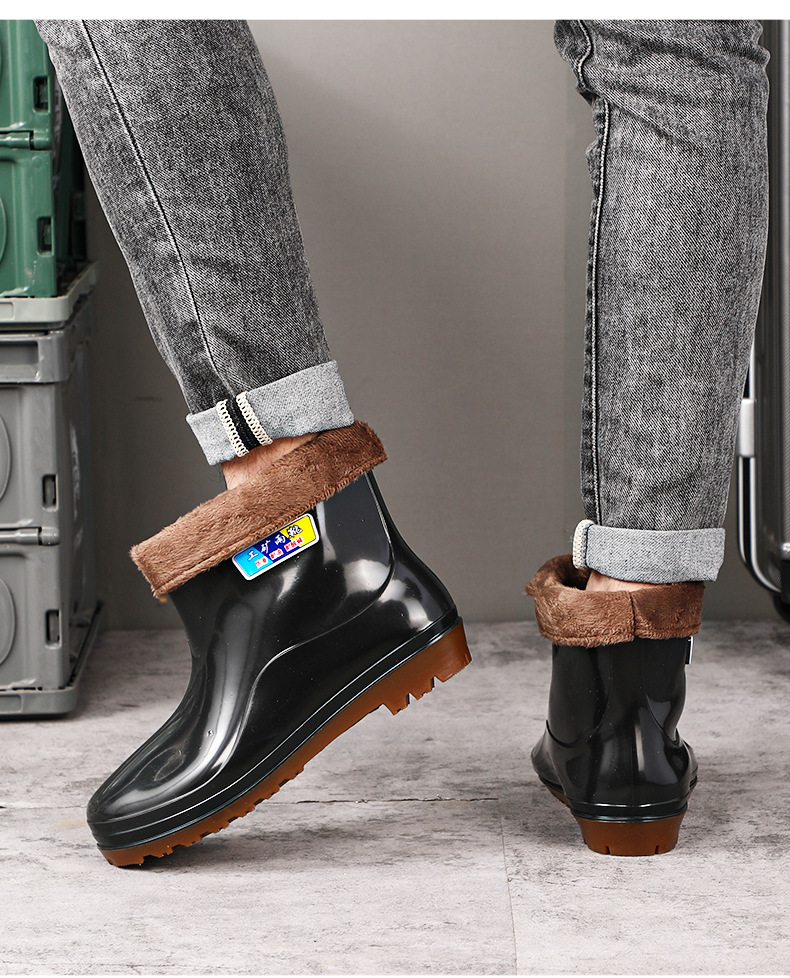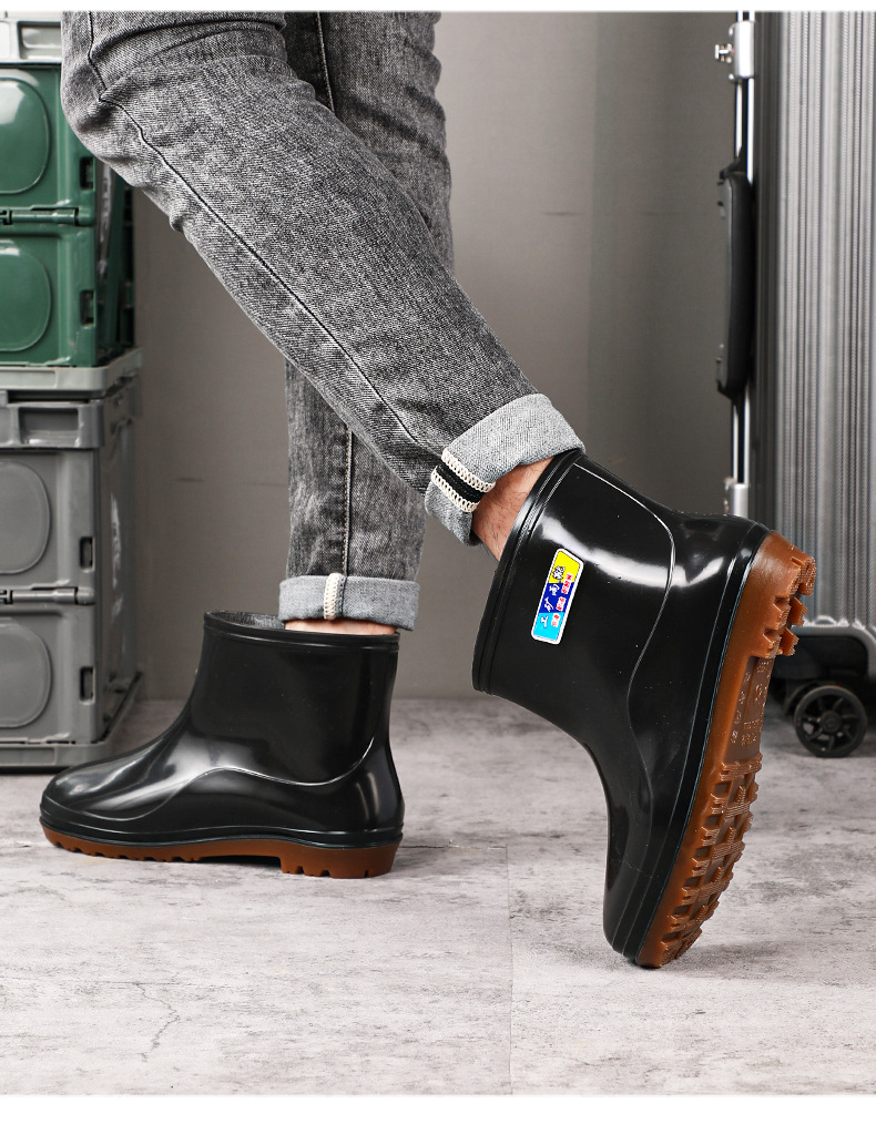 Резиновые сапоги на флисовой подкладке Мужские кислотостойкие резиновые сапоги Водонепроницаемая труба средней высоты Four Seasons Short Tube Shoes Резиновая обувь Нескользящая износостойкая Водная обувь для мужчин