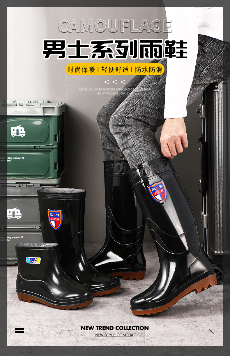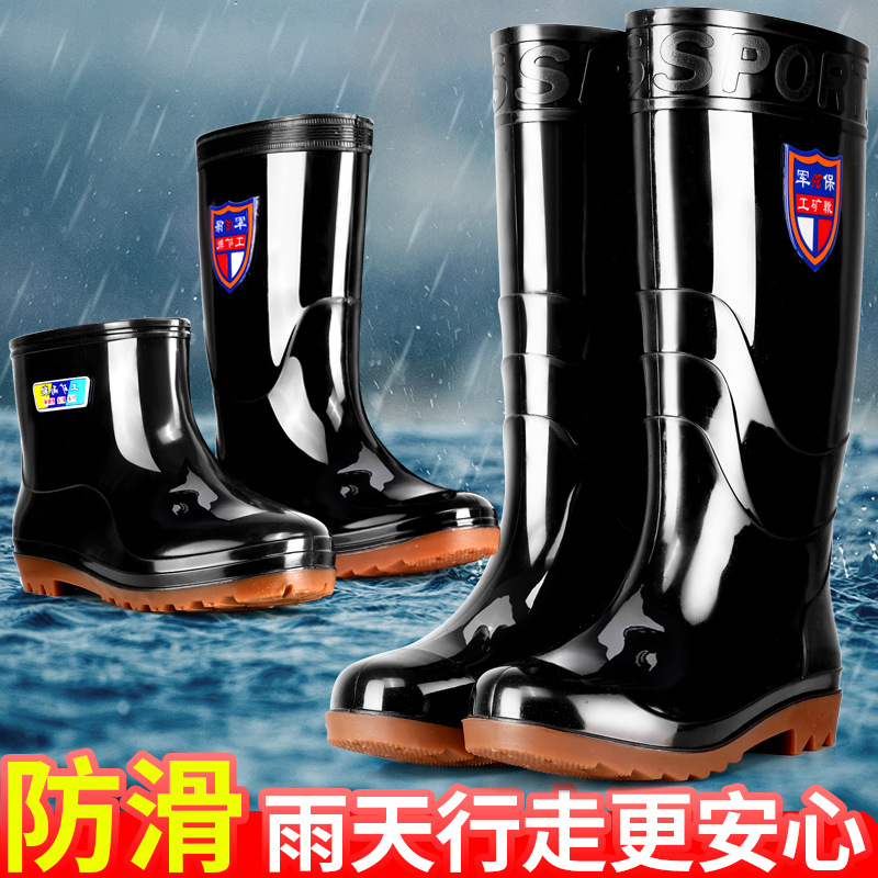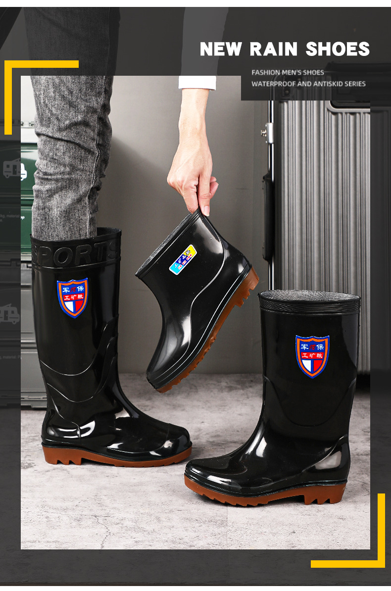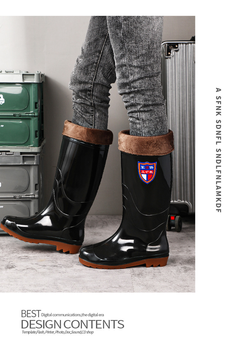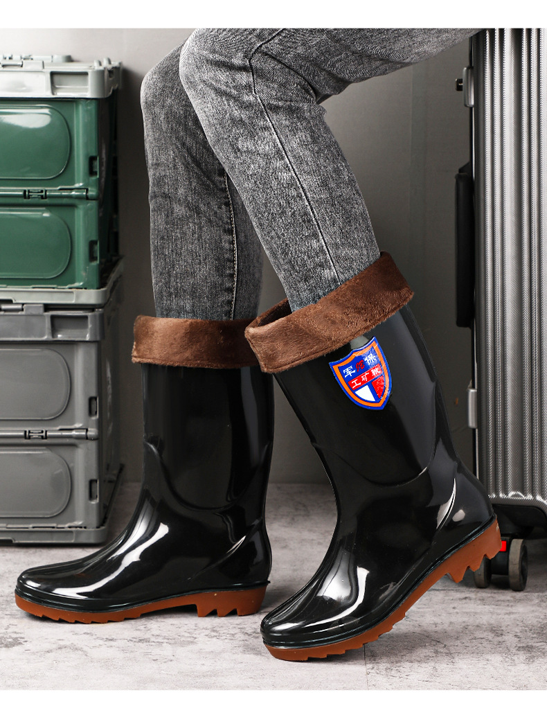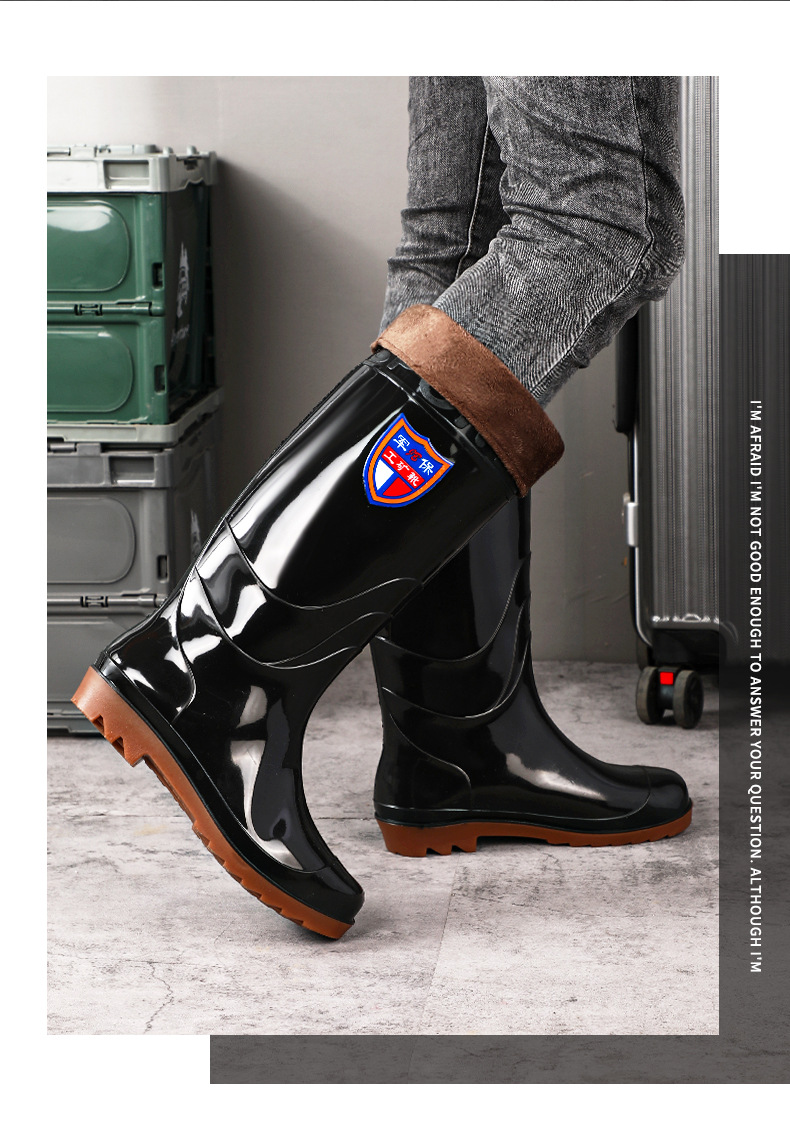 Резиновые сапоги на флисовой подкладке Мужские кислотостойкие резиновые сапоги Водонепроницаемая труба средней высоты Four Seasons Short Tube Shoes Резиновая обувь Нескользящая износостойкая Водная обувь для мужчин