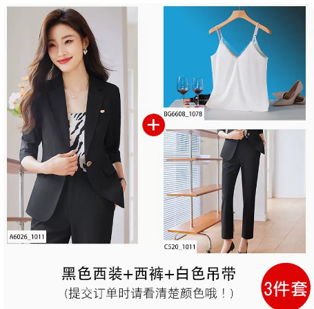Черный костюмный костюм женский летний тонкий высокий смысл с семиточными рукавами темпераментная рабочая одежда профессиональное пальто для интервью