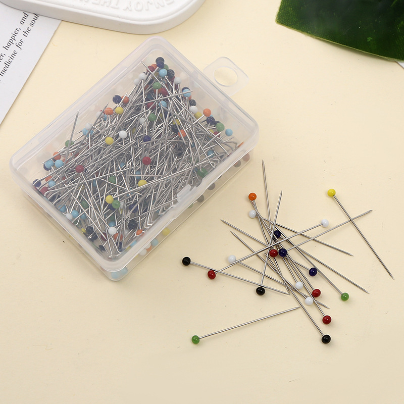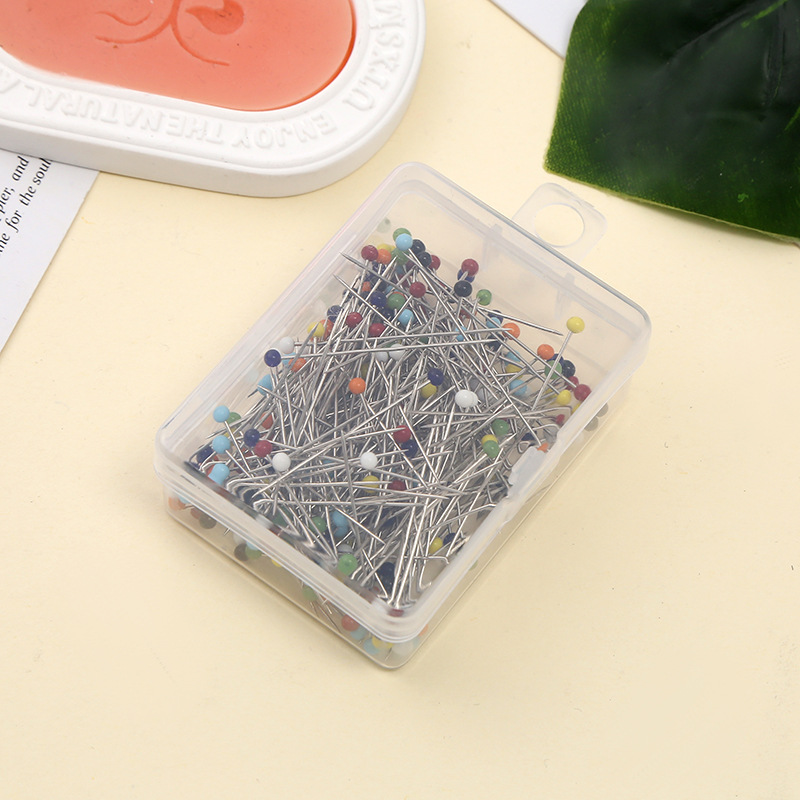 200 штук булавок с стеклянными головками в упаковке из полипропилена, цветных булавок с стеклянными головками в коробке, булавок для свадебных платьев.