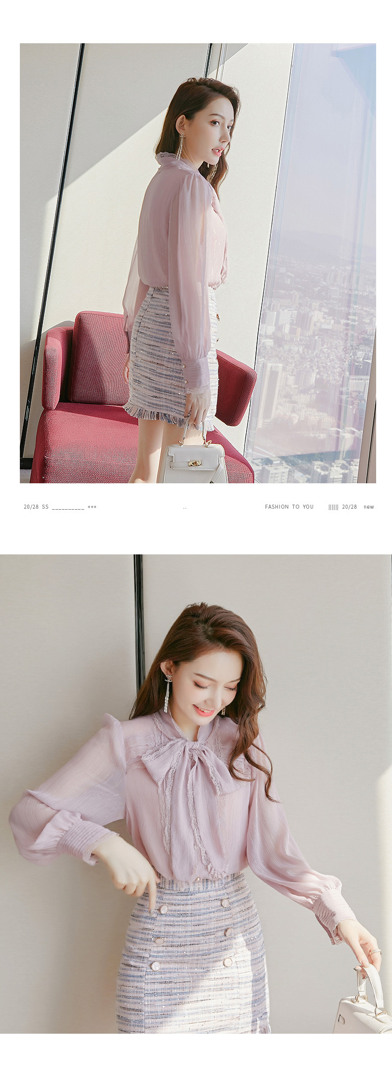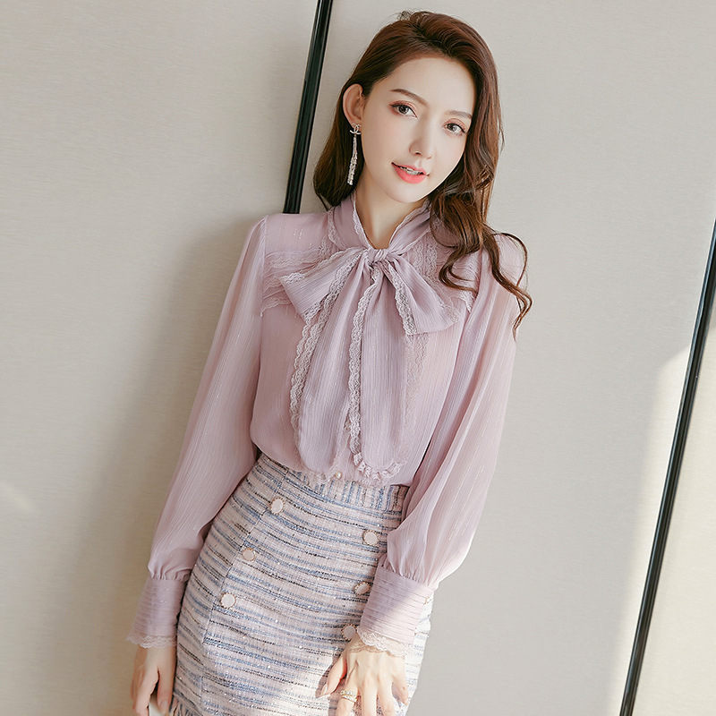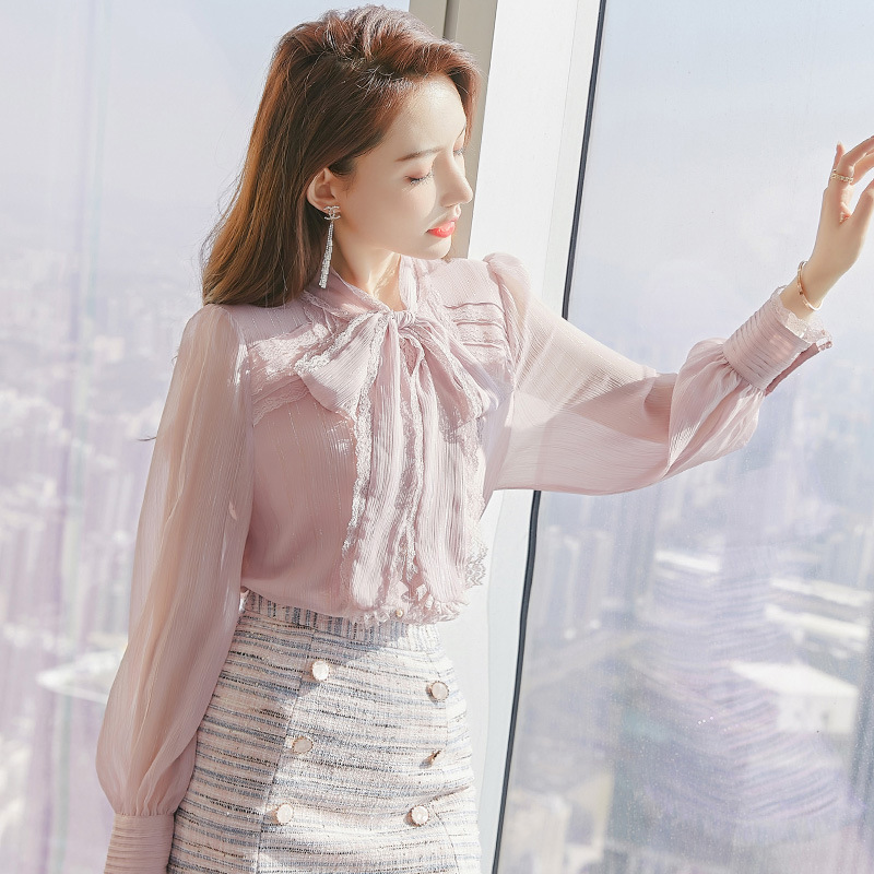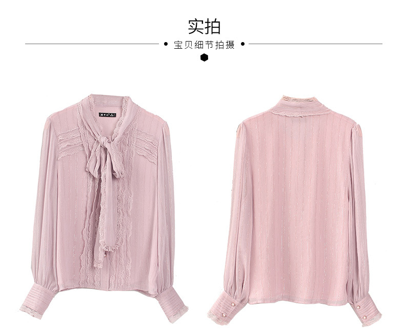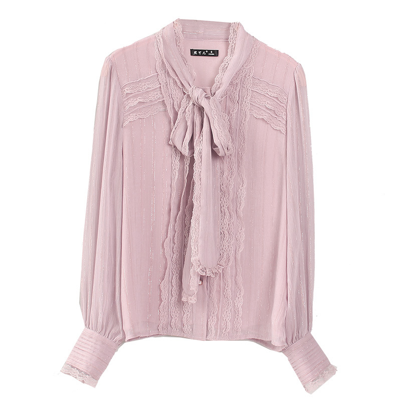 11128 один кусок волос 2024 осень новая французская рубашка высокого уровня изысканная шифоновая рубашка женская длинная рукава