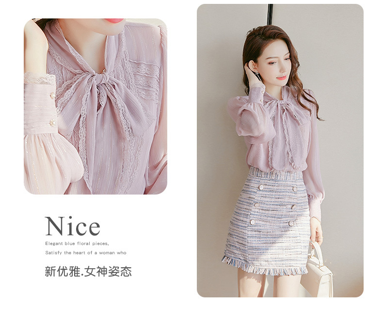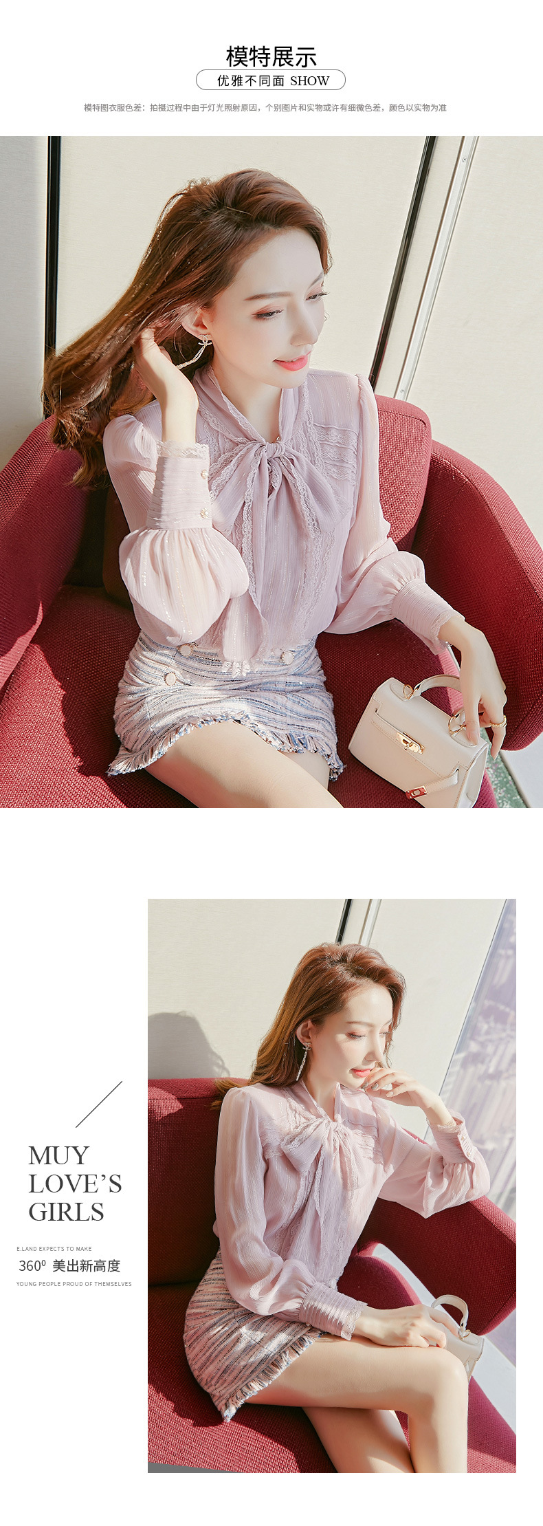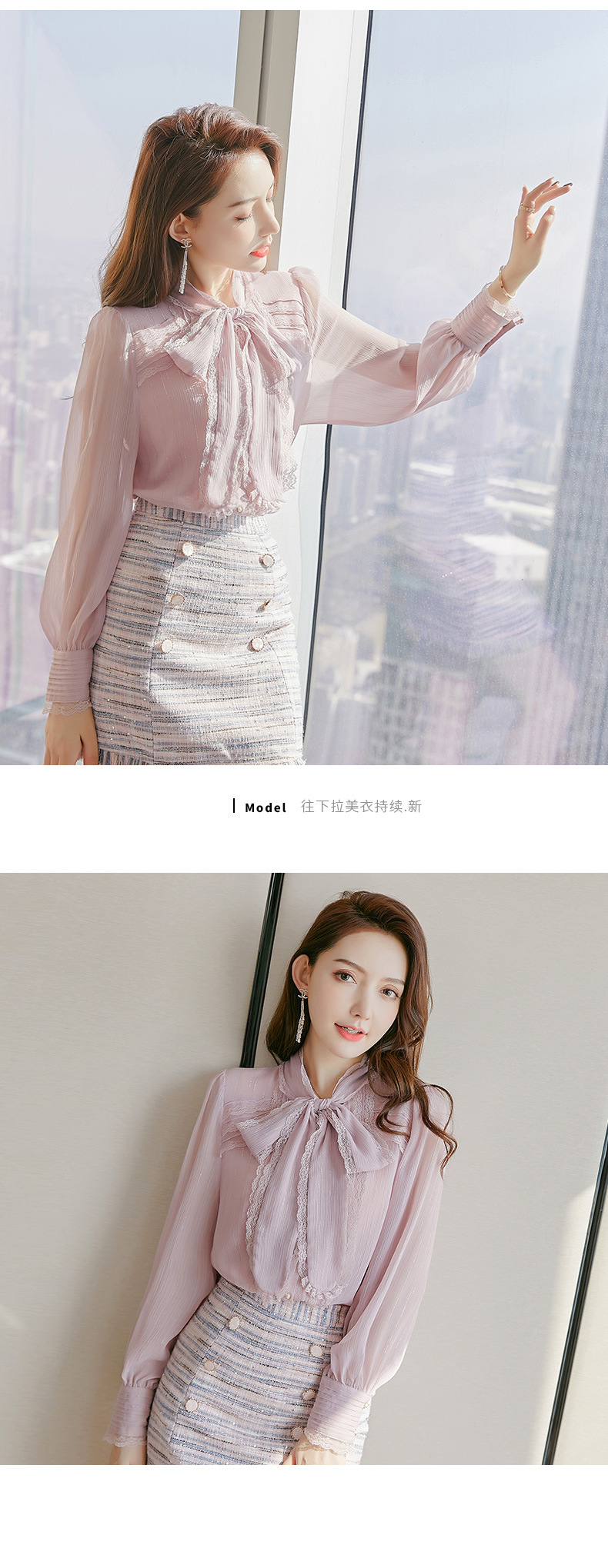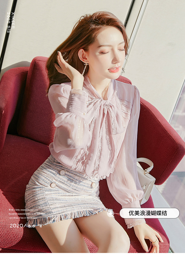 11128 один кусок волос 2024 осень новая французская рубашка высокого уровня изысканная шифоновая рубашка женская длинная рукава