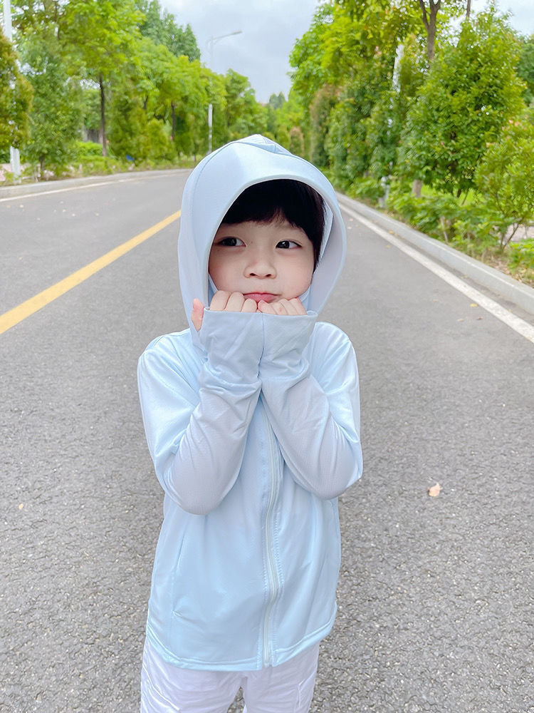 Детская Солнцезащитная одежда Bunny второго поколения летняя тонкая ледяная шелковая с капюшоном для мальчиков и девочек Солнцезащитная одежда оптом