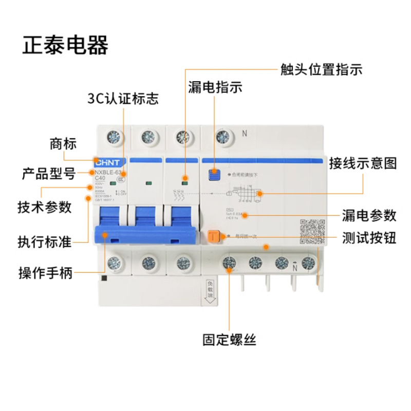 Протектор утечки Chint NXBLE-63 Автоматический выключатель 125A воздушный выключатель 3P 125A открытый с защитой от утечки DZ47