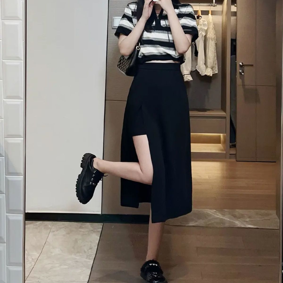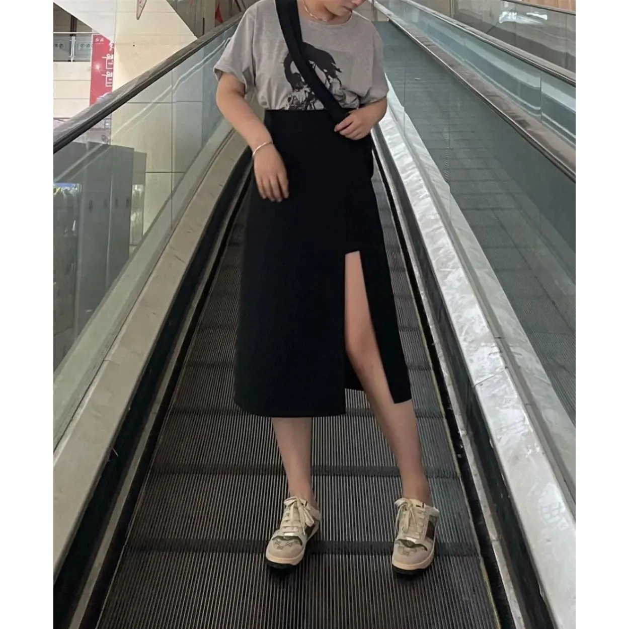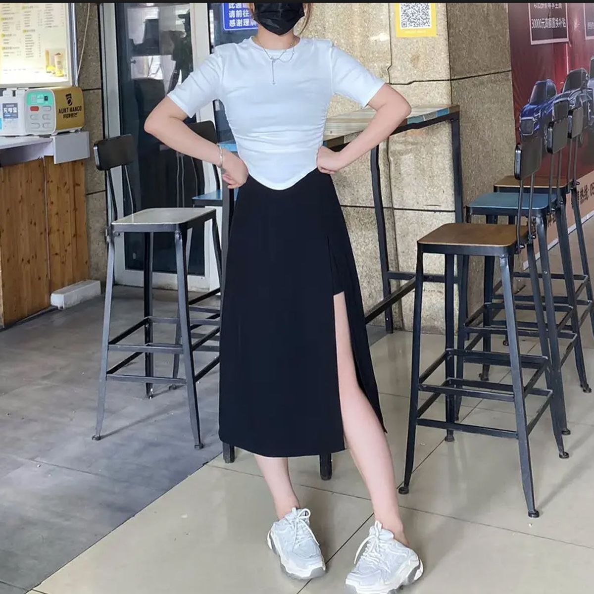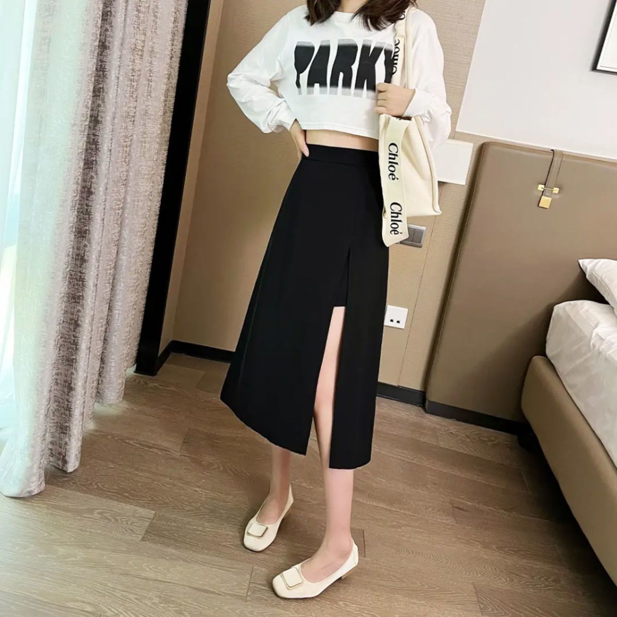Женская юбка больших размеров на весну и осень-лето, новая приталенная юбка средней длины с высокой талией и разрезом