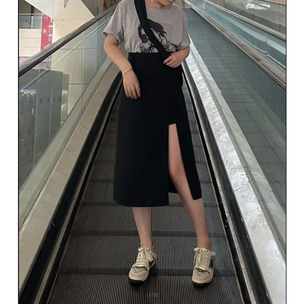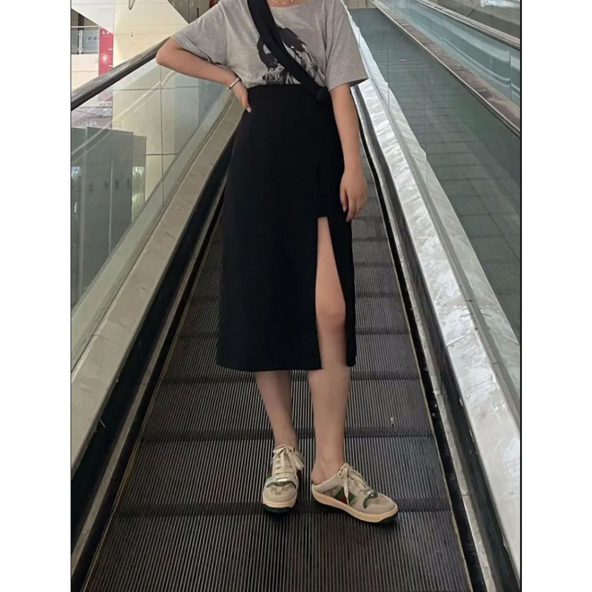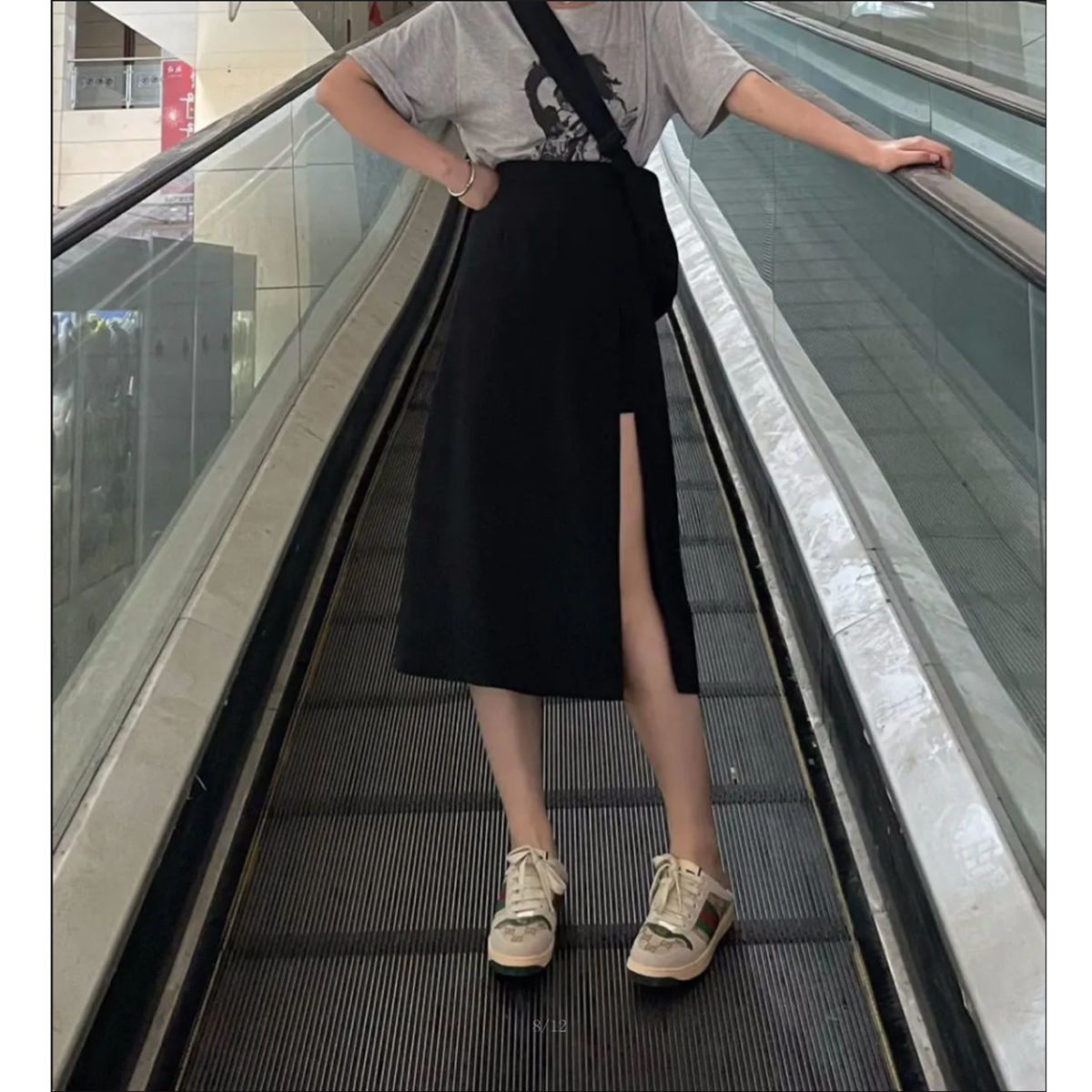 Женская юбка больших размеров на весну и осень-лето, новая приталенная юбка средней длины с высокой талией и разрезом