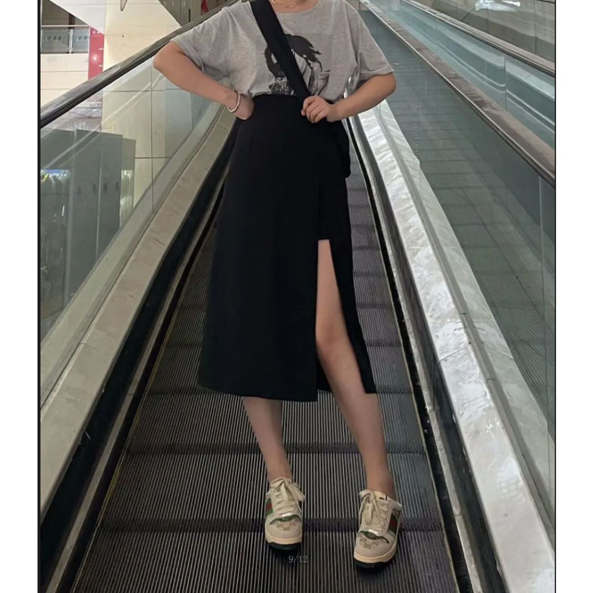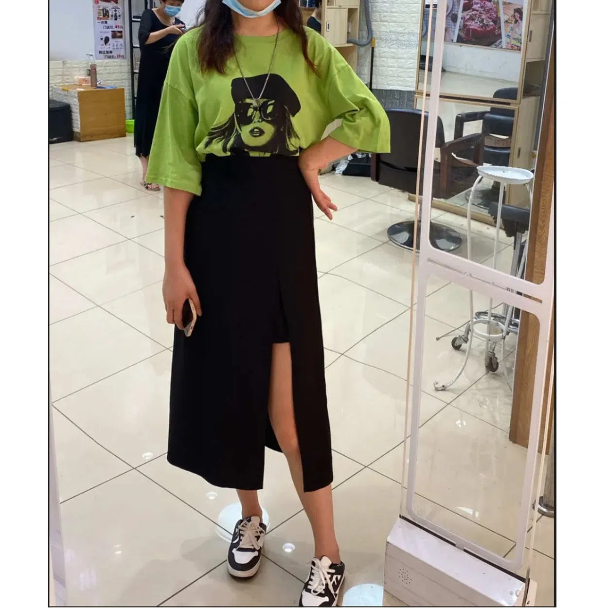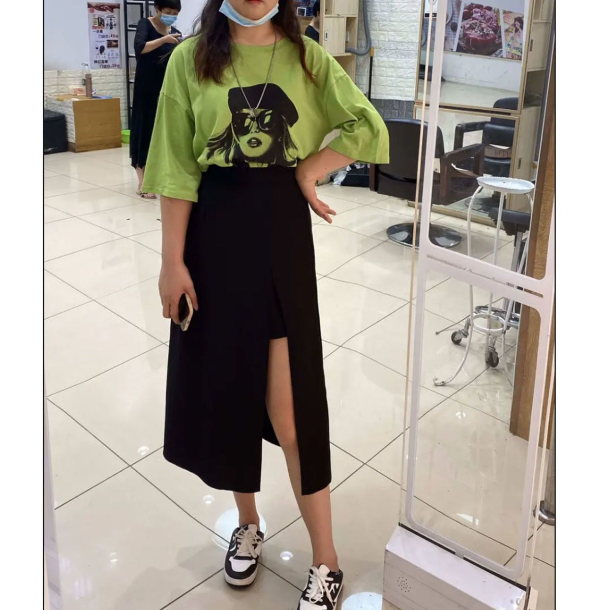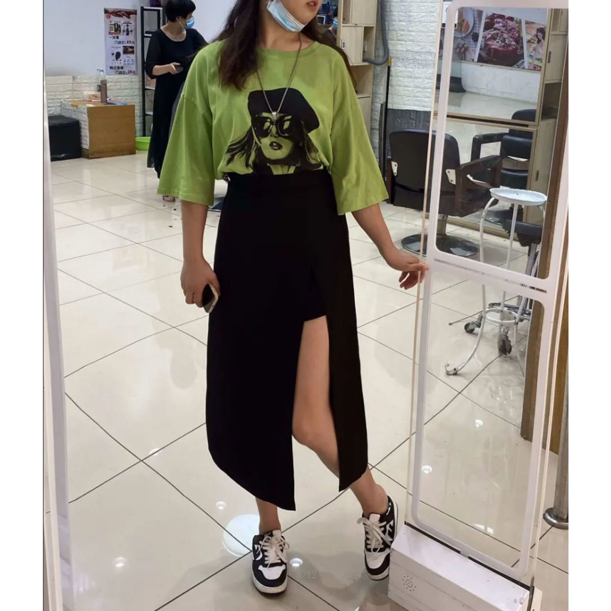 Женская юбка больших размеров на весну и осень-лето, новая приталенная юбка средней длины с высокой талией и разрезом