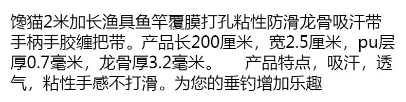 Удлиненные рыболовные снасти Cat 2 м, пленка для удочки, штамповка, липкий нескользящий Киль, впитывающий пот ремень, ручка, ручная намотка клея, ремень