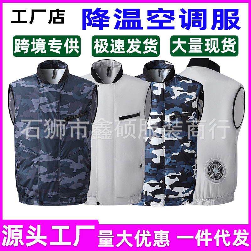 Трансграничный охлаждающий костюм для кондиционирования воздуха Вентиляторный костюм для мужчин и женщин Легкий трудовой жилет с вентилятором Холодильный рыболовный комбинезон мужской