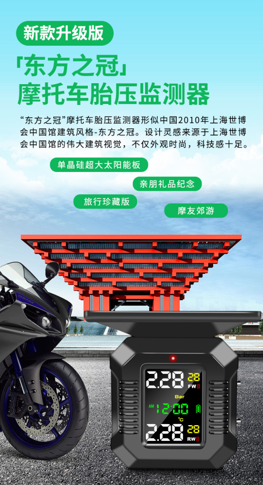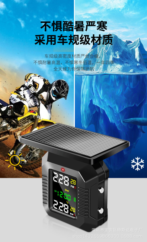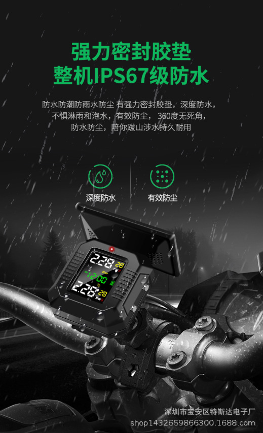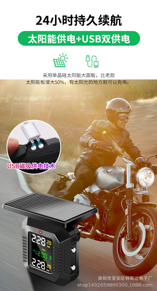 Монитор давления в шинах мотоцикла внешний беспроводной Солнечный 2-колесный мотоцикл электрическое давление в шинах полный водонепроницаемый дисплей
