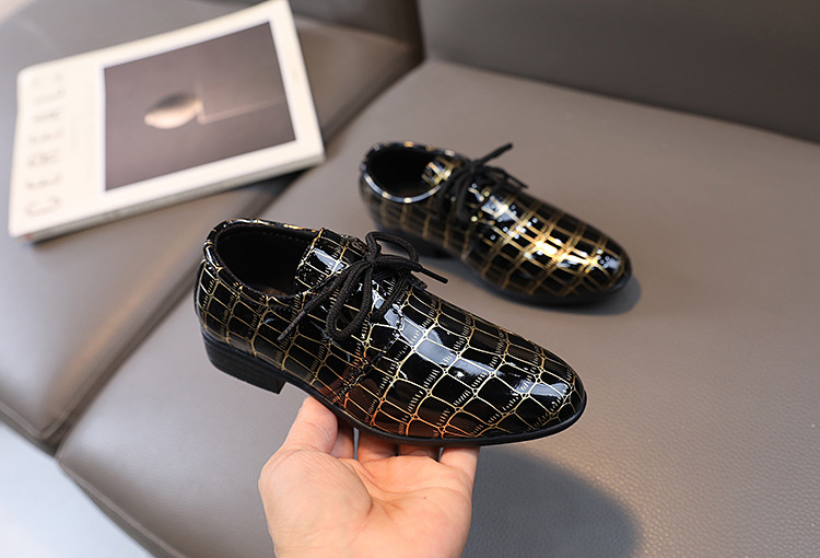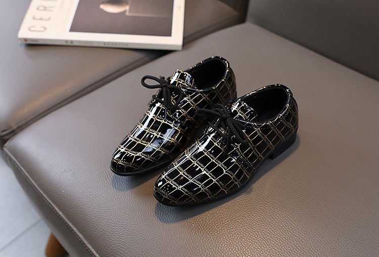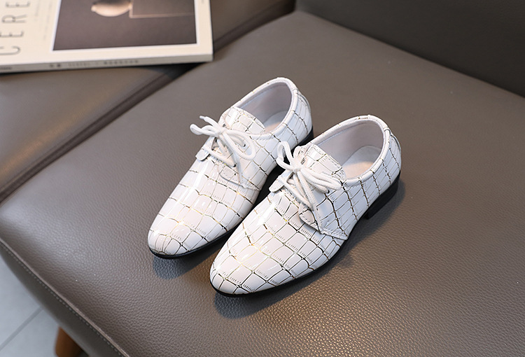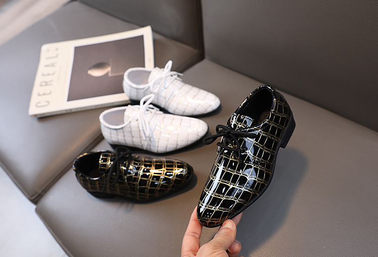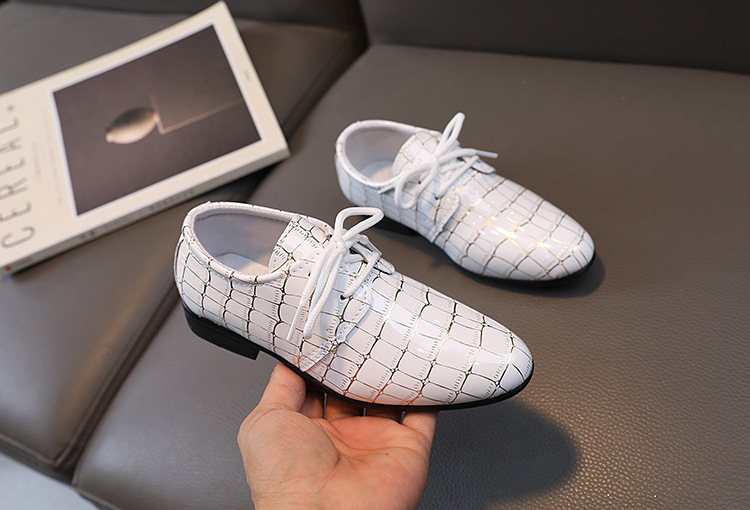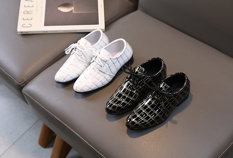 Кожаная обувь для мальчиков, школьные выступления для мальчиков, весенне-осенние одиночные туфли, черно-белая клетчатая детская кожаная обувь в британском стиле для студентов