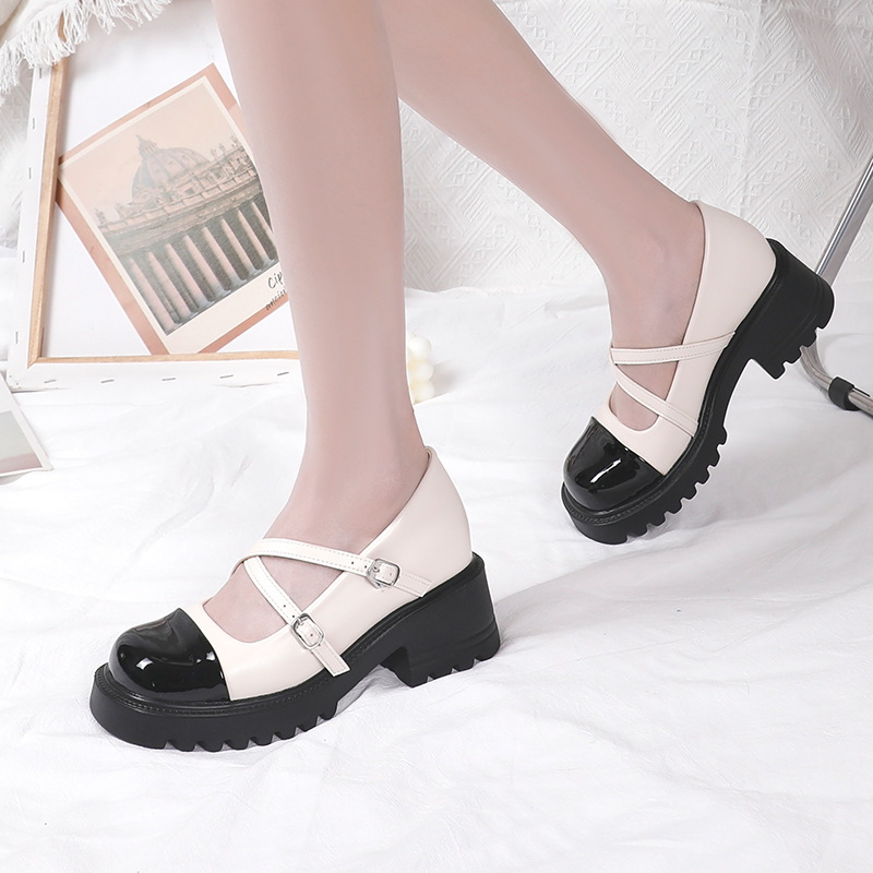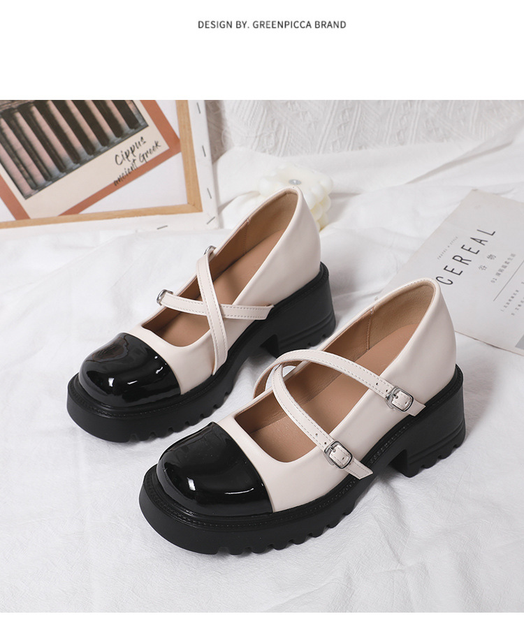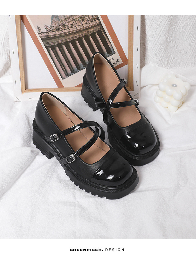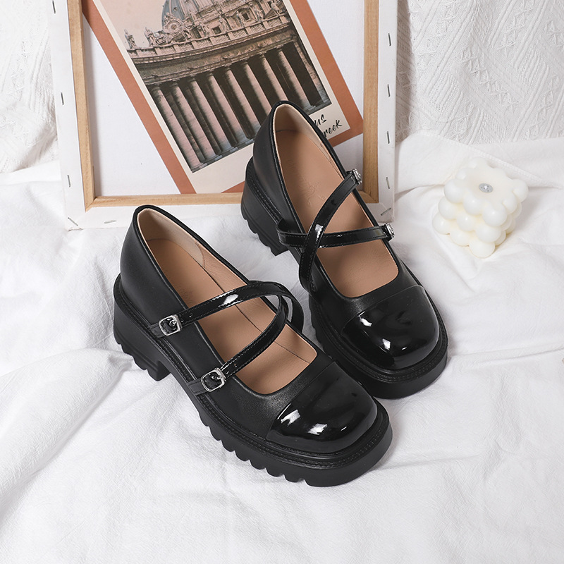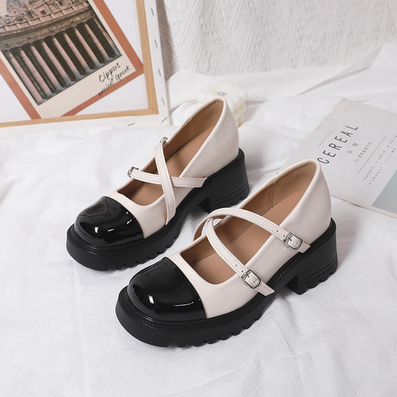 Туфли Мэри Джейн во французском стиле с перекрестными ремешками, винтажные кожаные туфли на толстой подошве, подходящие по цвету, женские мокасины на толстой подошве, увеличивающие внутренний рост