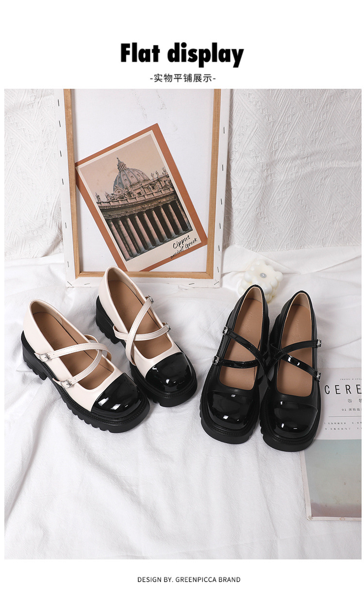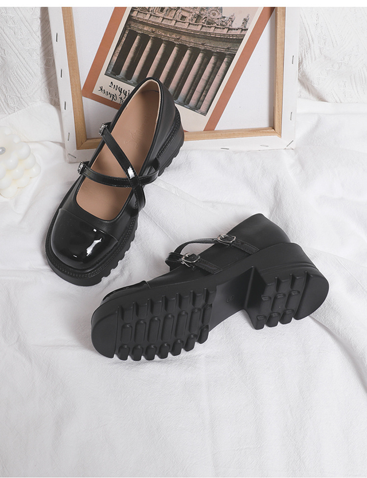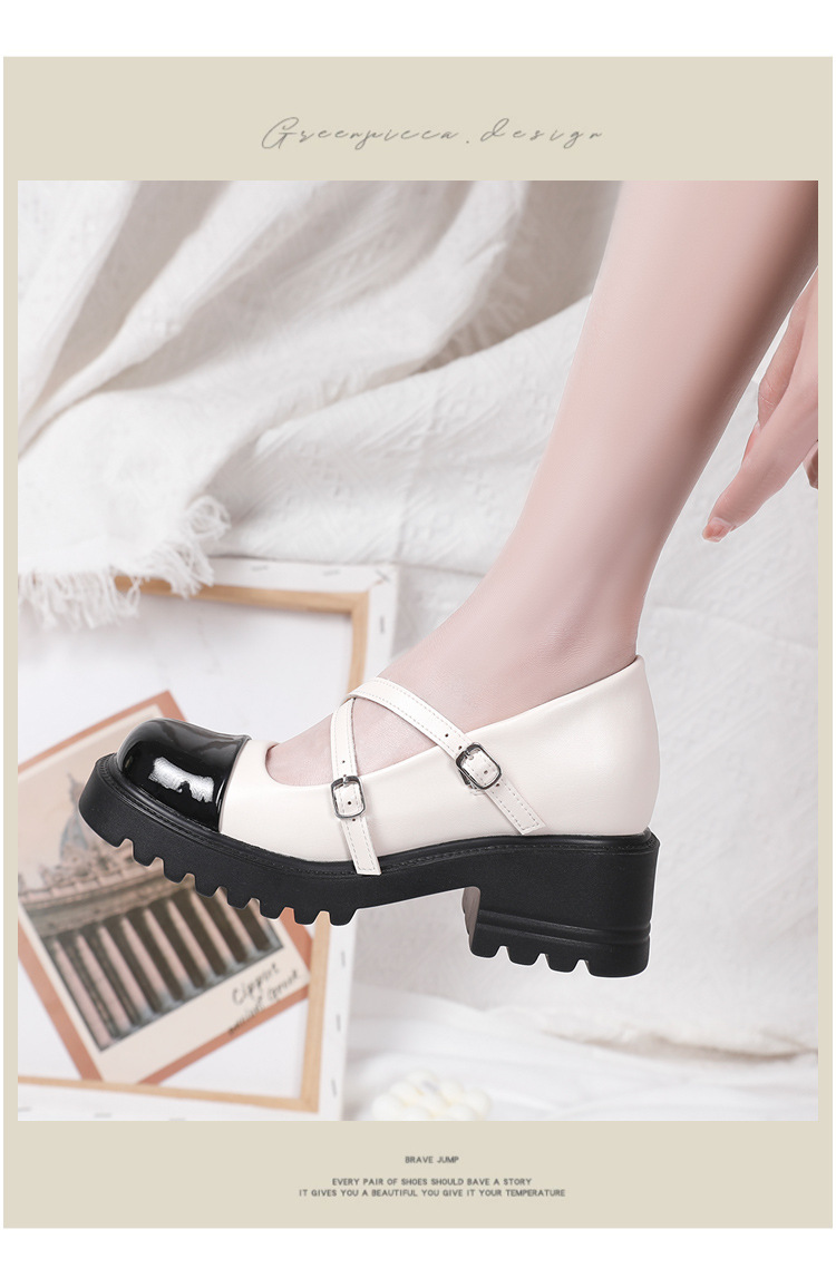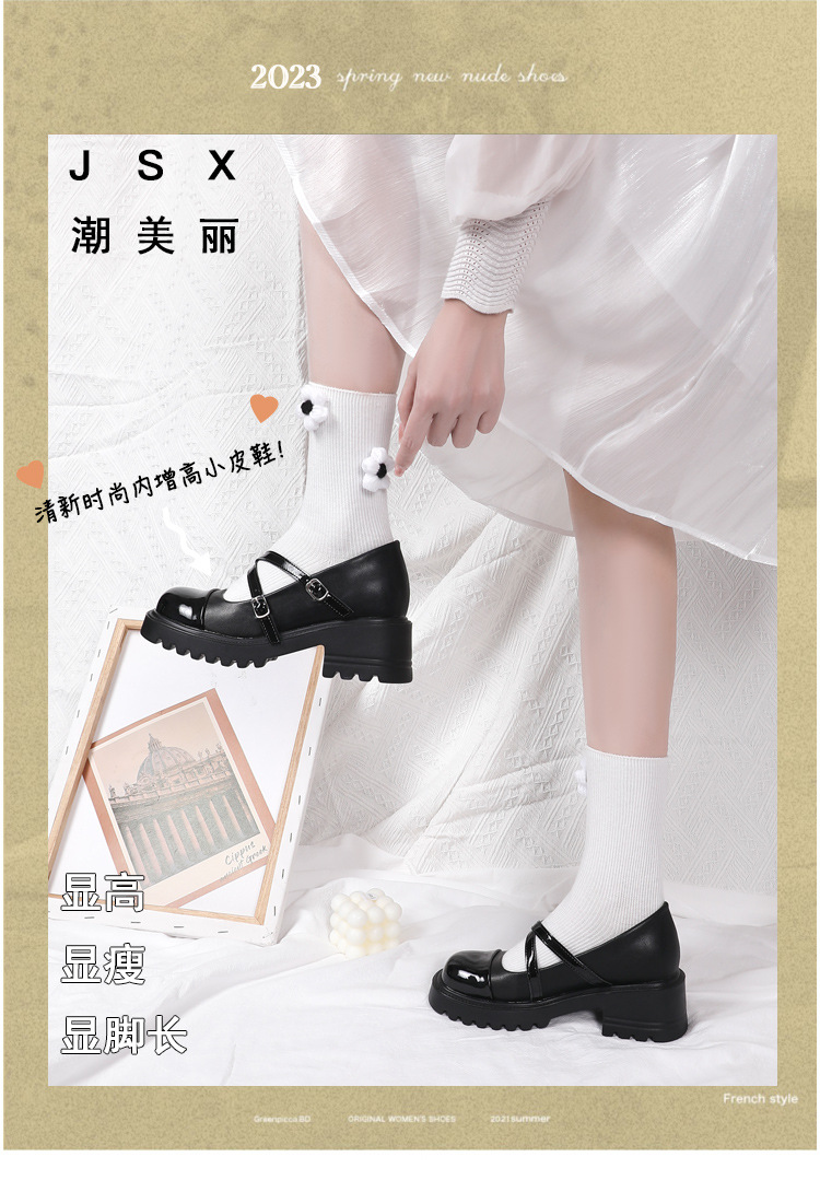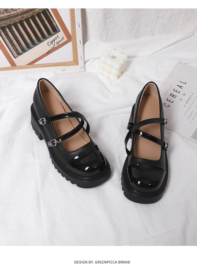 Туфли Мэри Джейн во французском стиле с перекрестными ремешками, винтажные кожаные туфли на толстой подошве, подходящие по цвету, женские мокасины на толстой подошве, увеличивающие внутренний рост