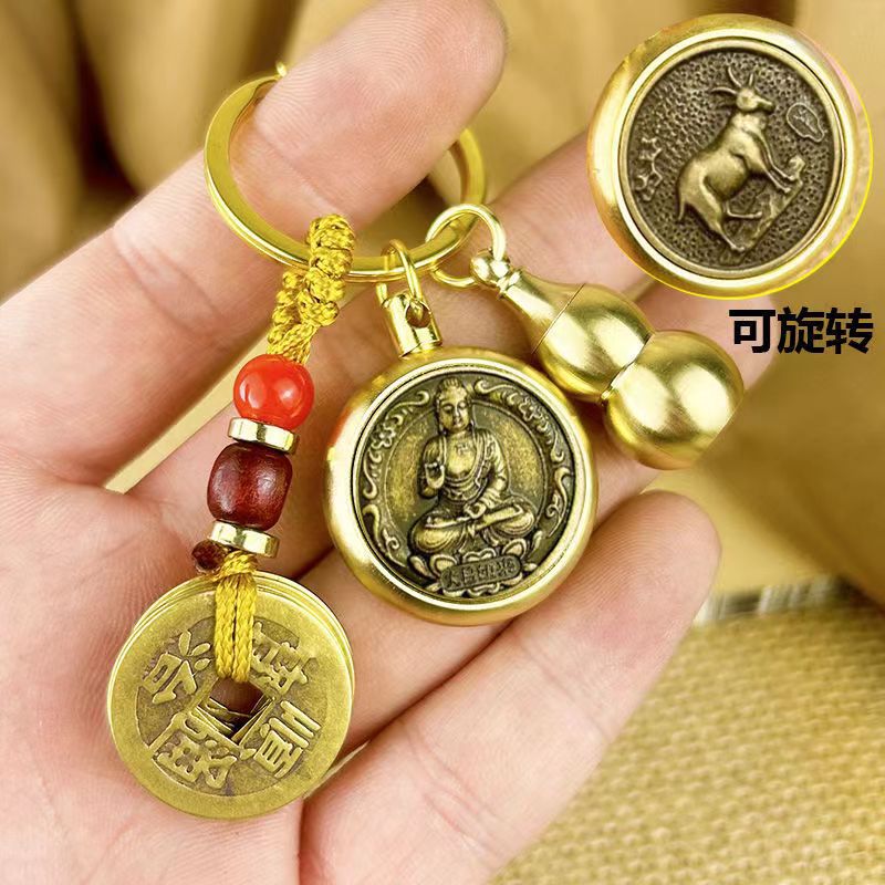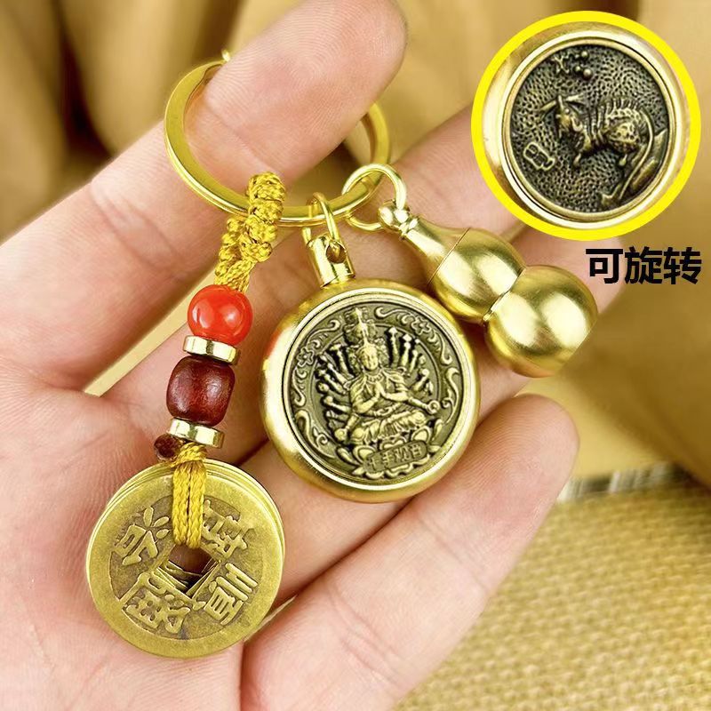 Латунный Зодиак Хранитель Бог превратите деньги пять императоров деньги медная Тыква может упаковать киноварь Lucky ручной автомобильный брелок
