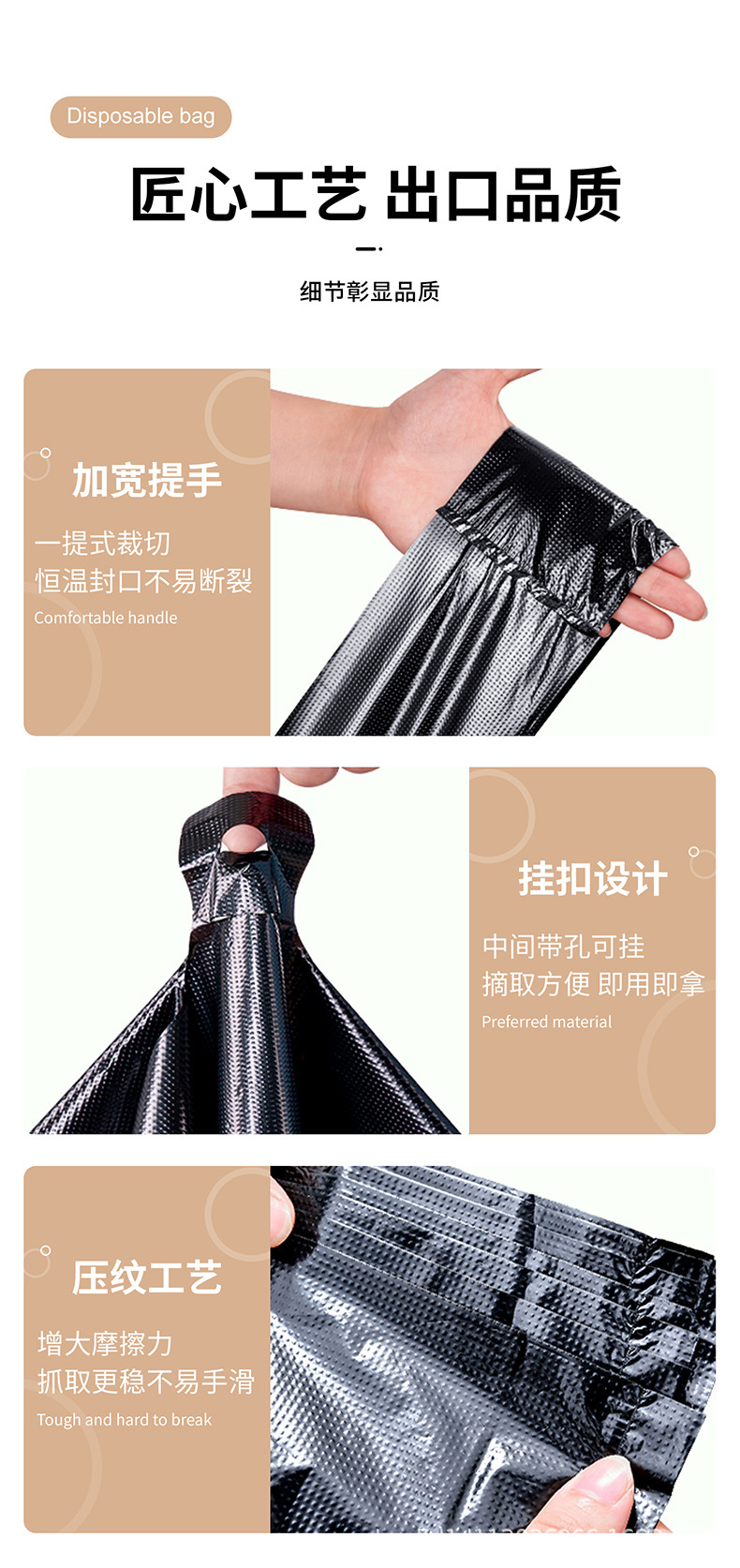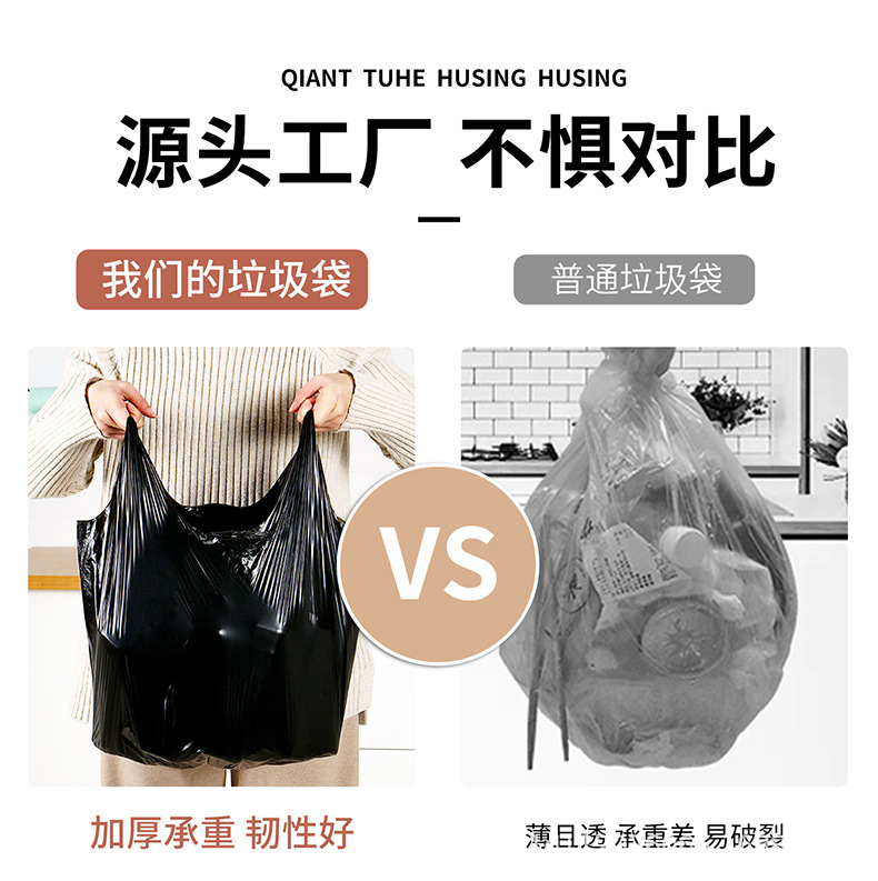 Жилет мусорный мешок Бытовая утолщенная большая портативная удобная сумка Одноразовый черный пластиковый пакет Оптовая Продажа с фабрики