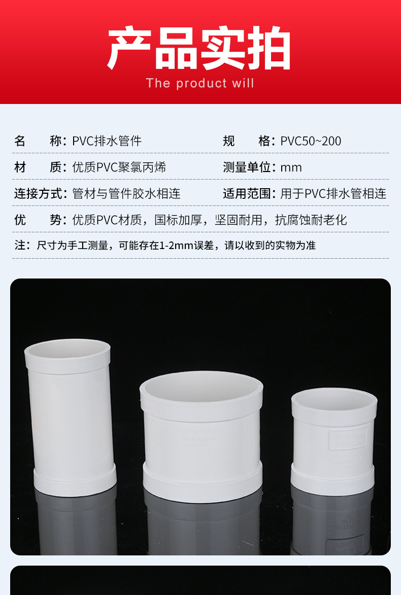 Верхний построен ПВХ прямой трубы обруч водосточной трубы прямой совместных канализационных труб Фитинги 50 фитинги 75 трубы 110 160