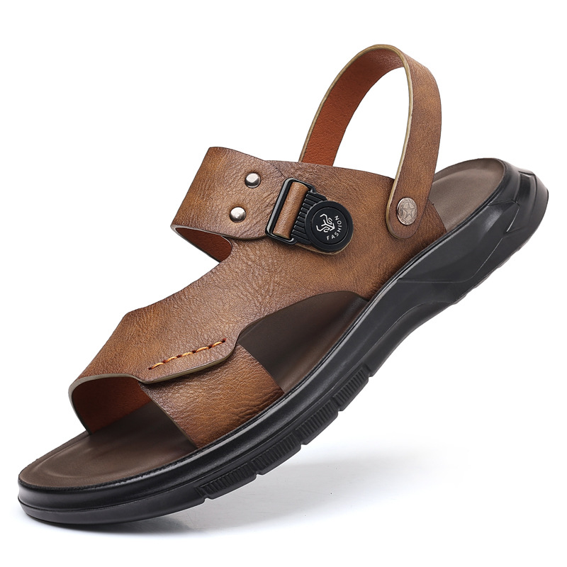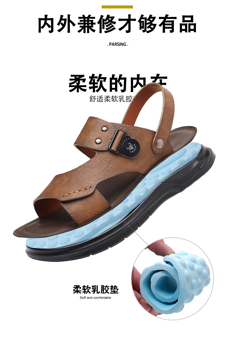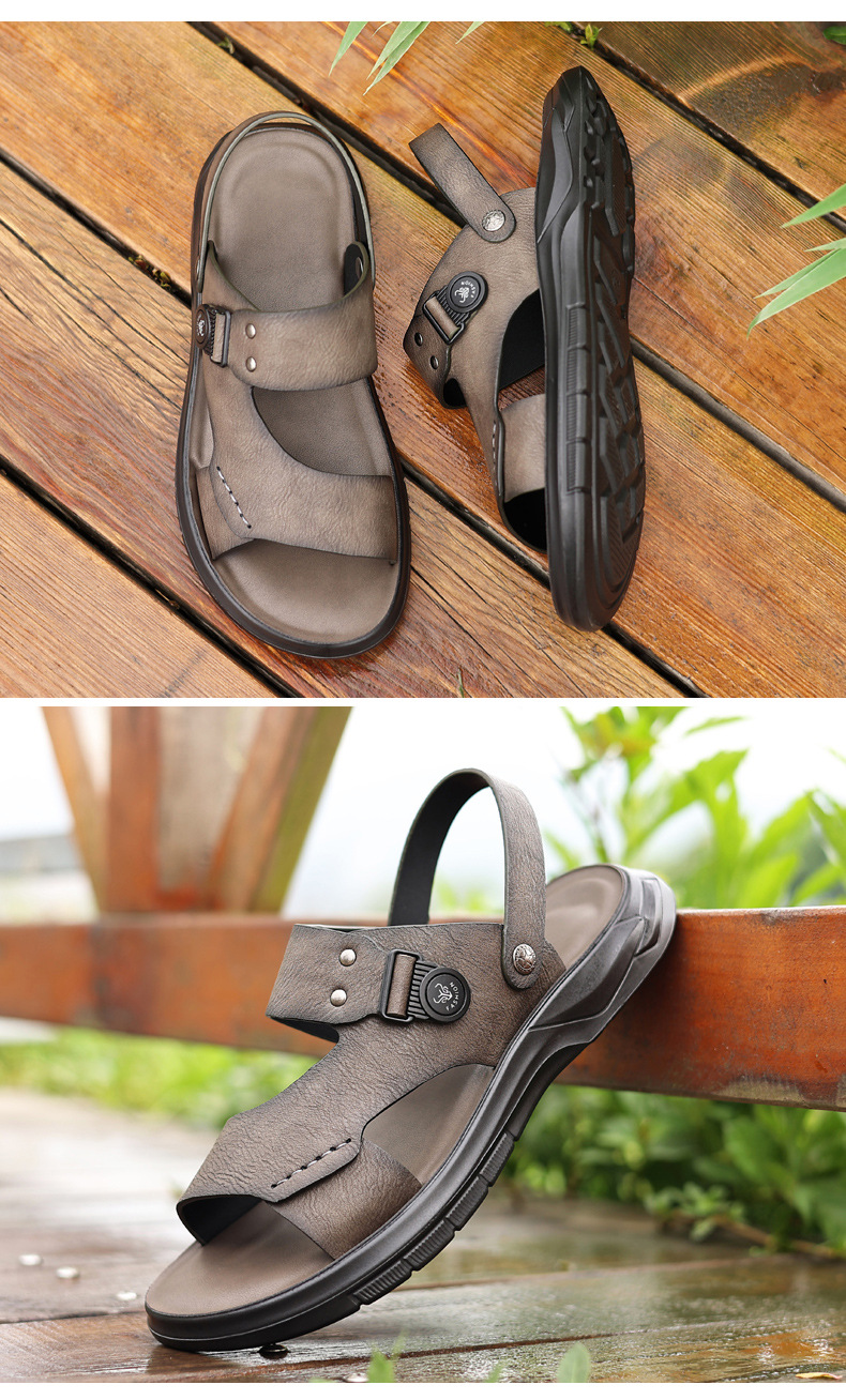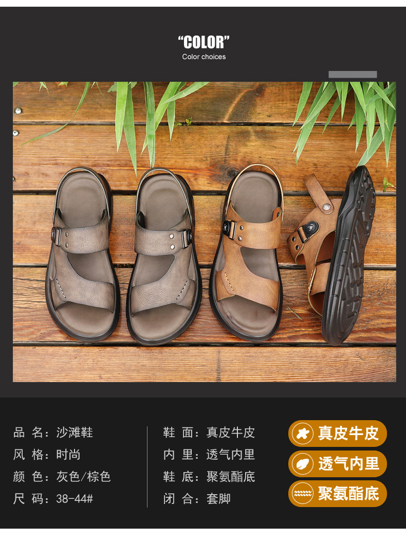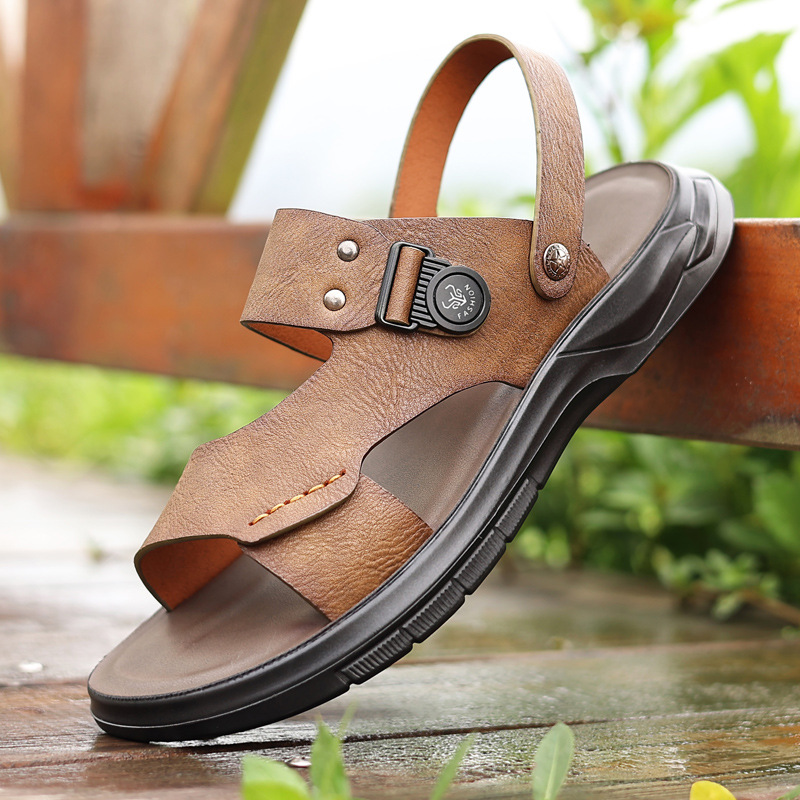 Мужские сандалии 2023, новые летние Нескользящие износостойкие повседневные пляжные туфли из натуральной кожи с мягким дном, уличные сандалии двойного назначения