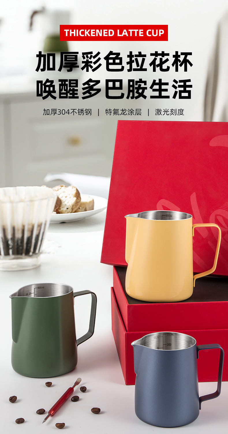 Чашка для латте-арта для трансграничной торговли, утолщенная чашка для взбивания молока, чашка для латте-арта из нержавеющей стали, бытовой инструмент для взбивания молока из пищевой стали, в наличии.