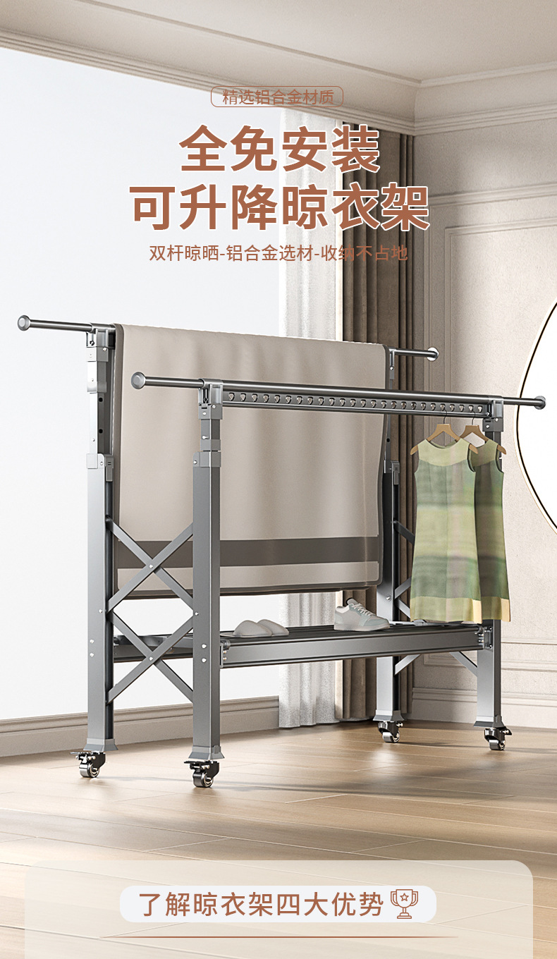 Напольная регулируемая сушилка для одежды из алюминиевого сплава, складная вешалка для одежды для домашнего балкона, сушилка для одеял, вешалка для одежды.