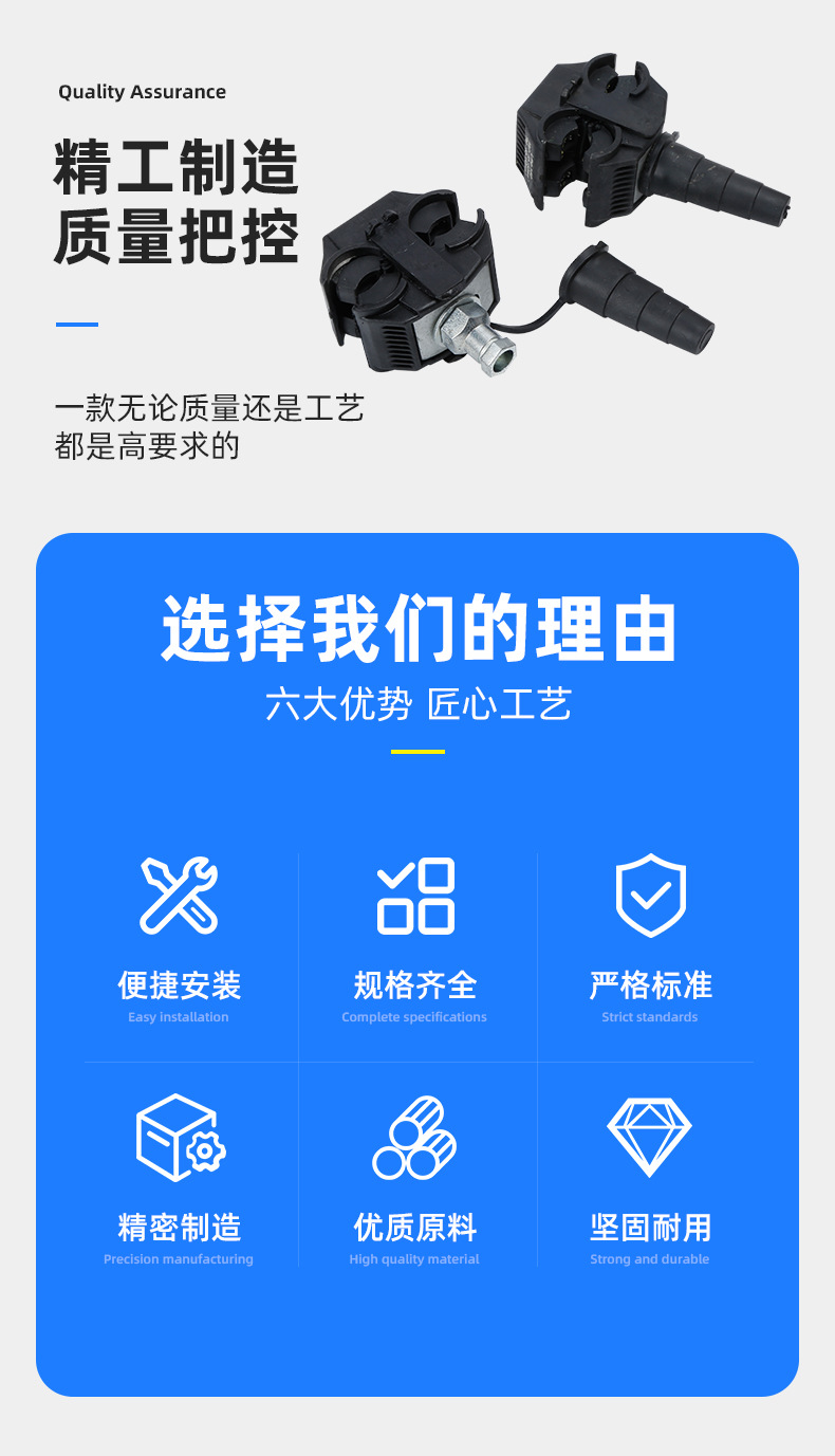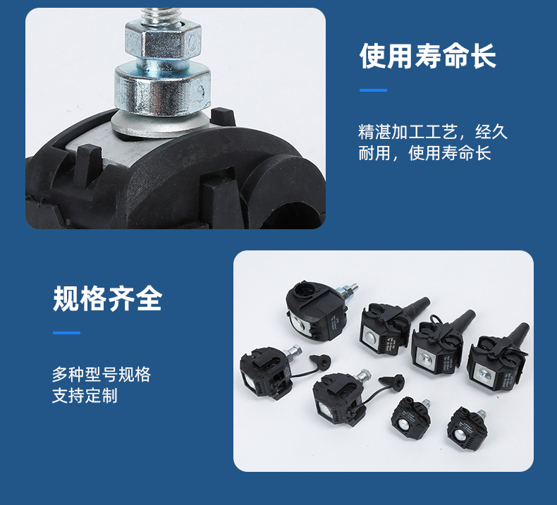 Производитель поставляет изолированный прокалывающий зажим JJC2-95 для низковольтных кабелей, без разрыва изоляции, для ответвлений кабеля.