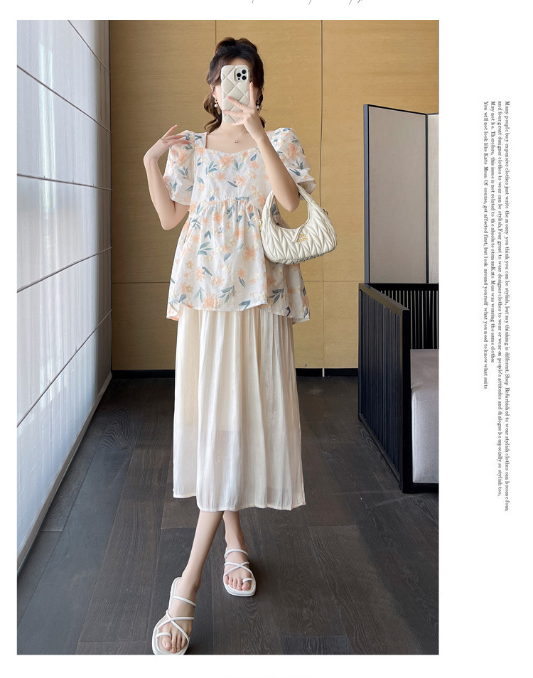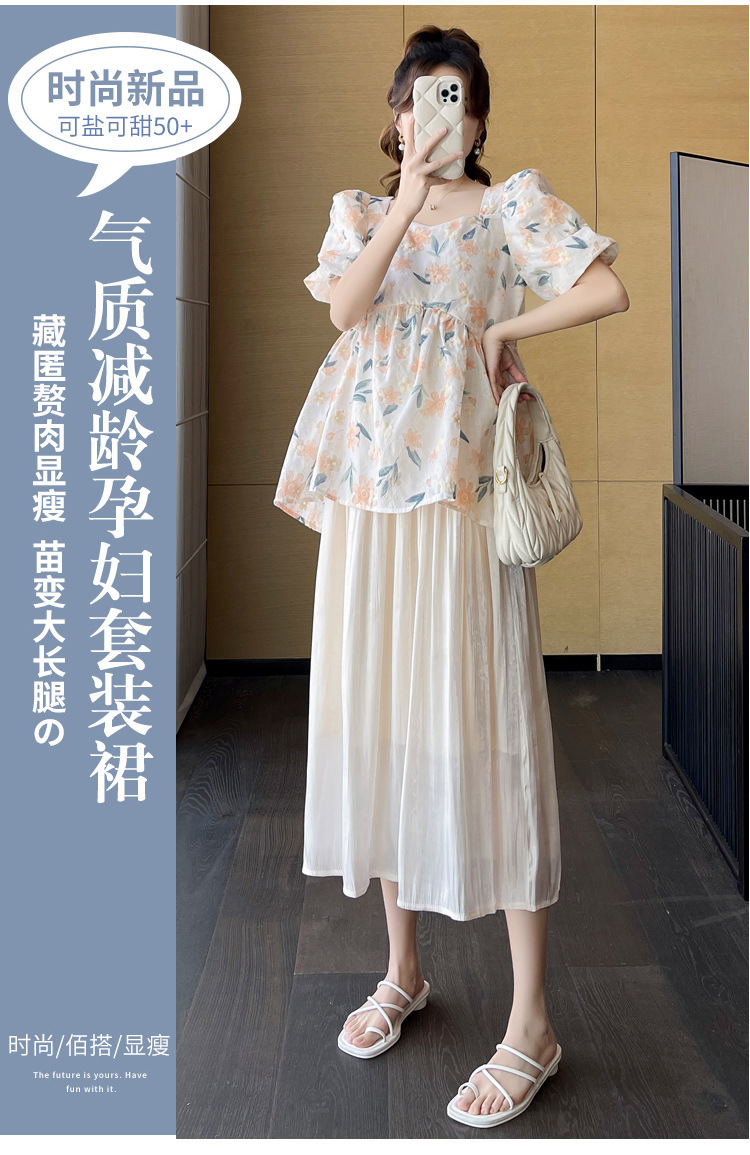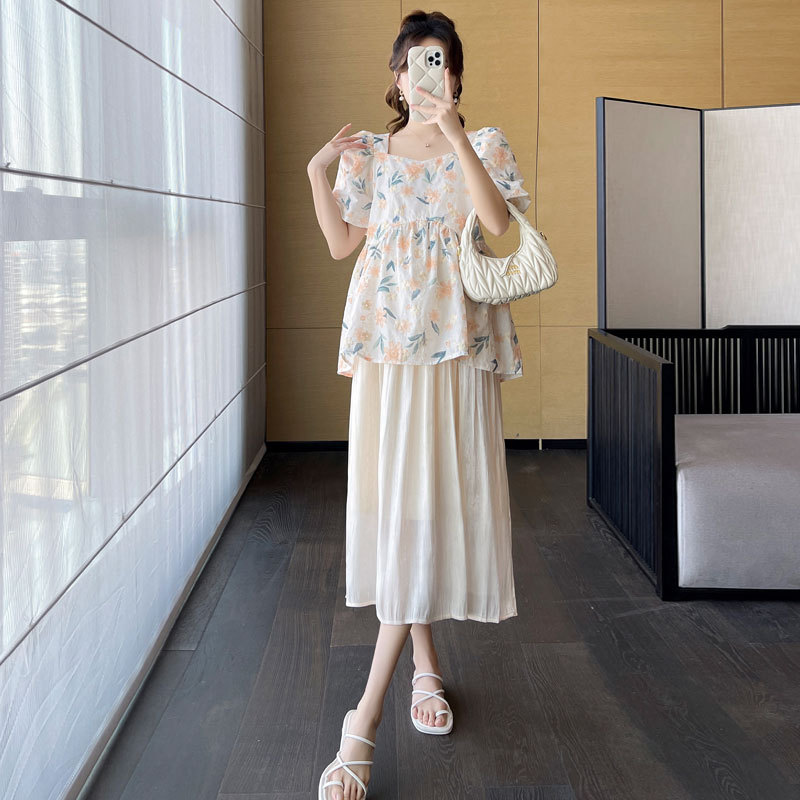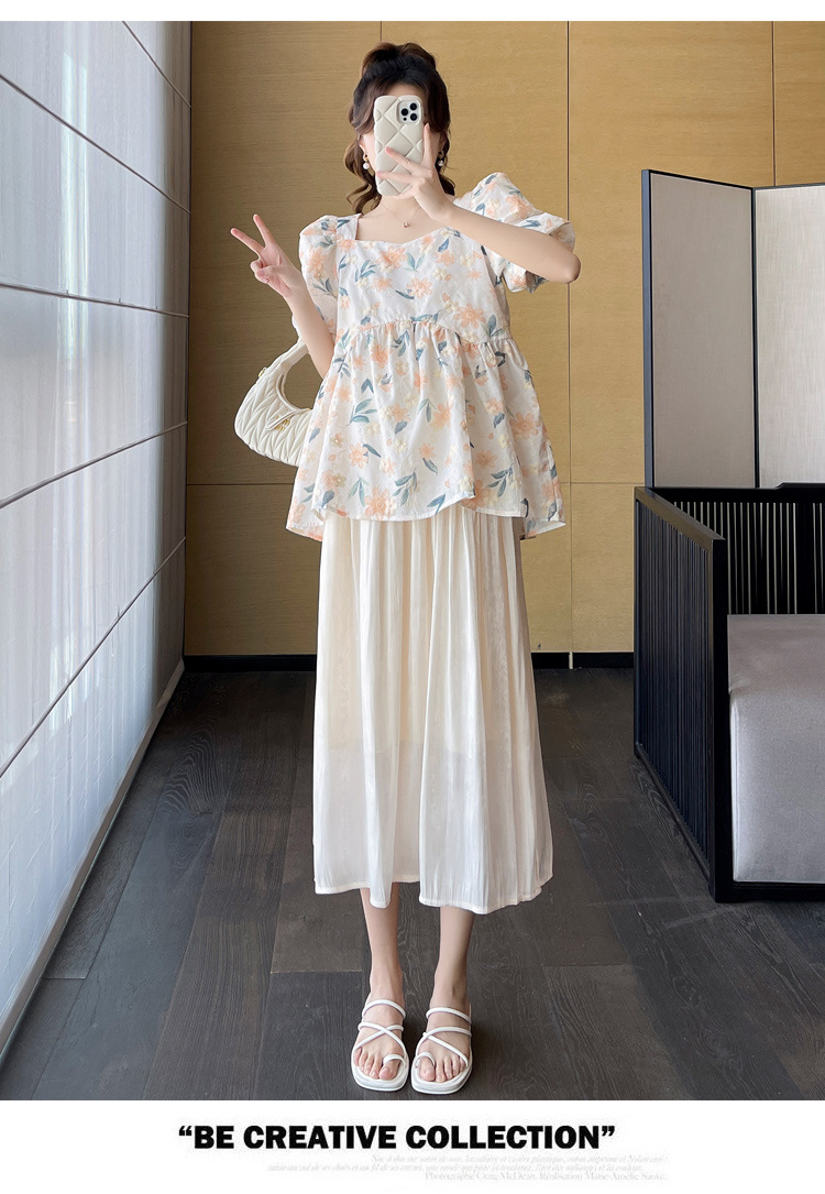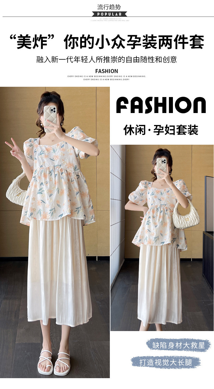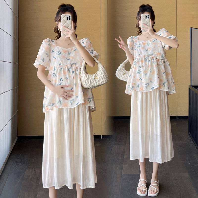Одежда для беременных, летний модный костюм, кукольная рубашка в западном стиле, топ с короткими рукавами, женский летний модный комплект из двух предметов, женский
