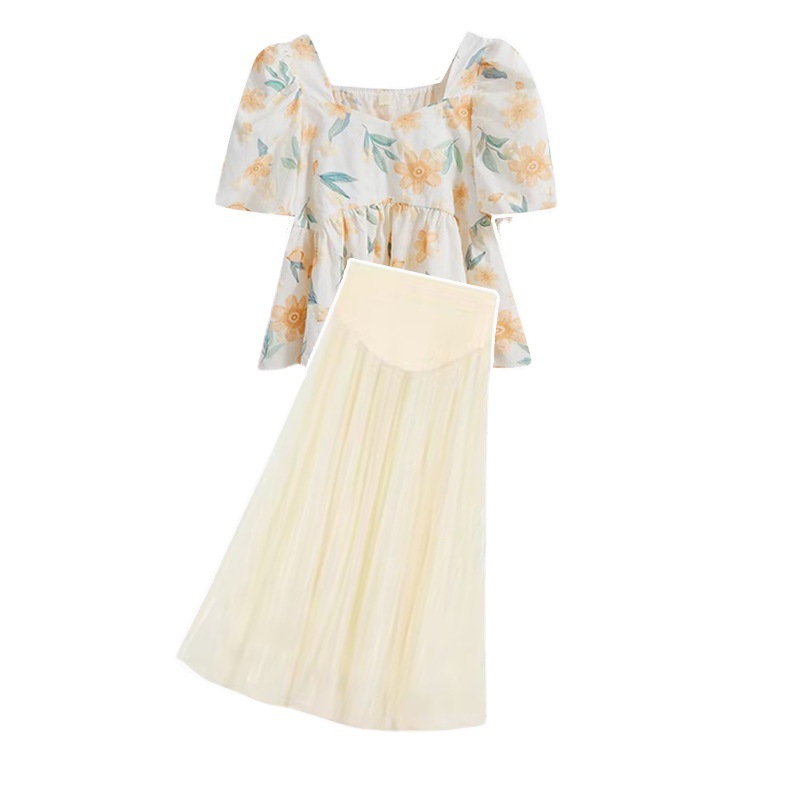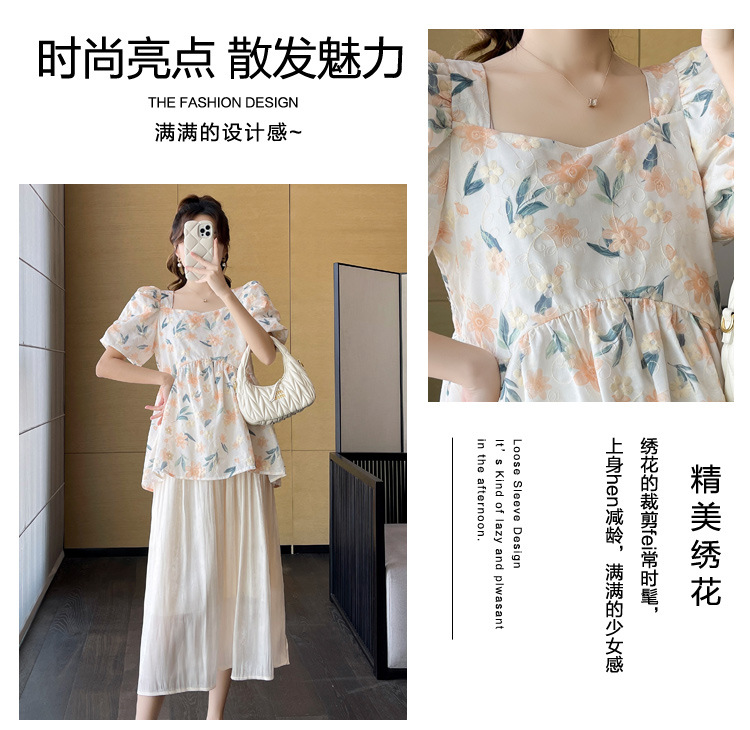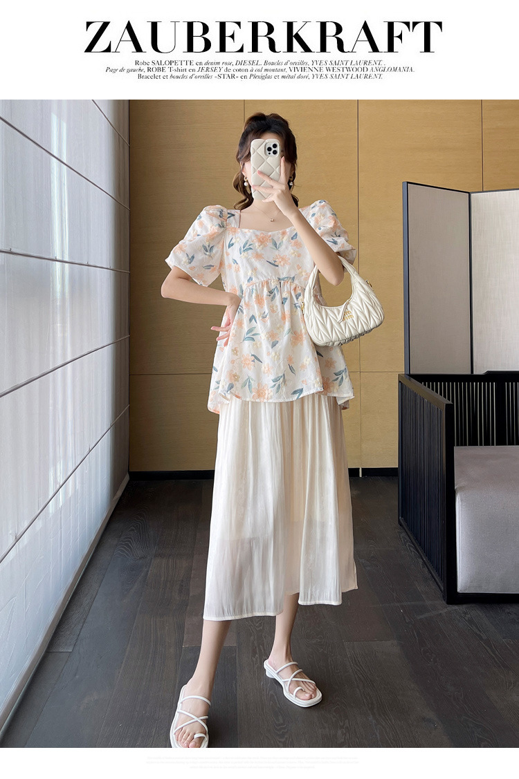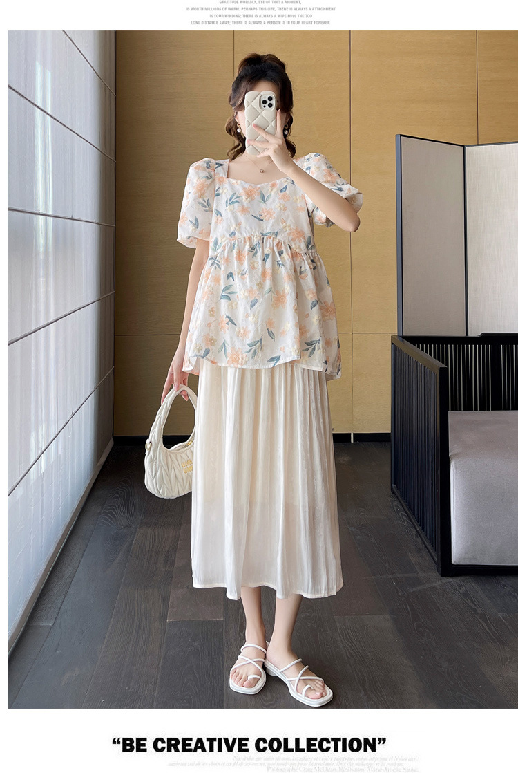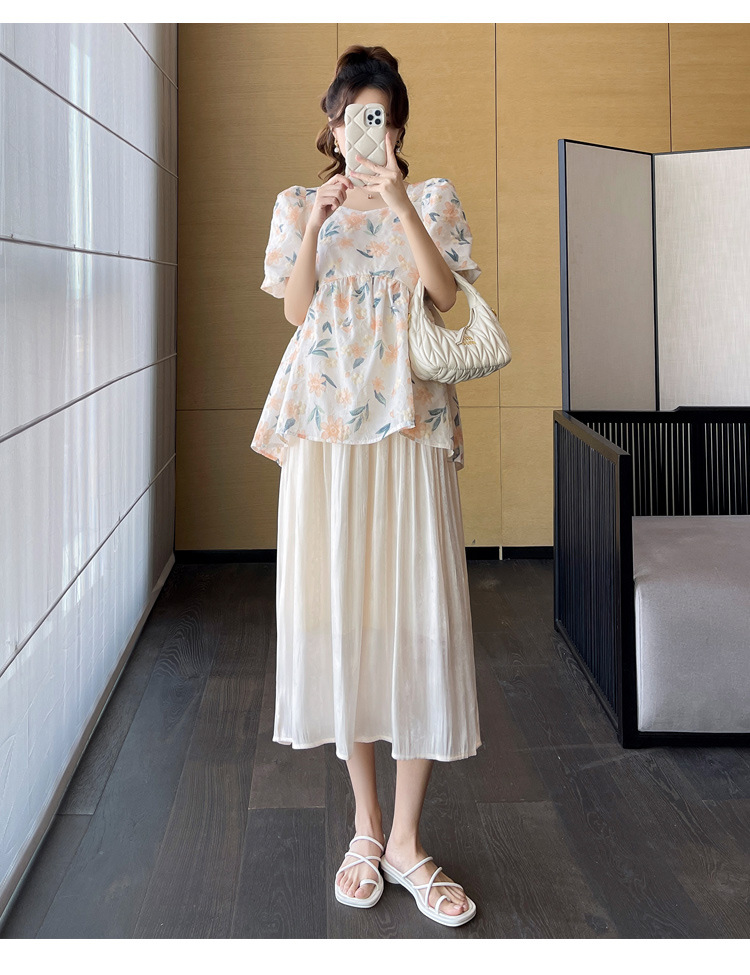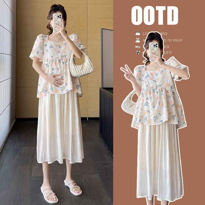 Одежда для беременных, летний модный костюм, кукольная рубашка в западном стиле, топ с короткими рукавами, женский летний модный комплект из двух предметов, женский