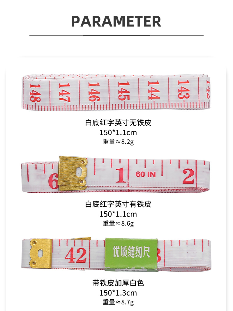 1,5 м белый фон, черные буквы, дюймы; 1,5 м белый фон с красными буквами в дюймах без металлической пластины; 1,5 м белый фон с красными буквами в дюймах на железной пластине; Размер рынка 1,5 м + см с железным листом белого цвета; Размер рынка 1,5 м + см с железным листом, цвет распределен случайным образом.; Безжелезная линейка для кожи головы 40см.; Безжелезная линейка для кожи головы 64см.; 1,3x150 мм красный текст на белом фоне; Экономичная модель с черным текстом на белом фоне.