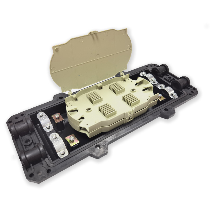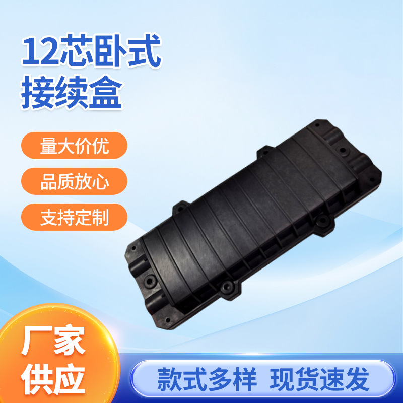 Волоконно-оптическая соединительная коробка 12 ядер Горизонтальная волоконно-оптическая соединительная коробка Толстый тип 2-2-2-Выходная кабельная распределительная коробка Горизонтальный черный