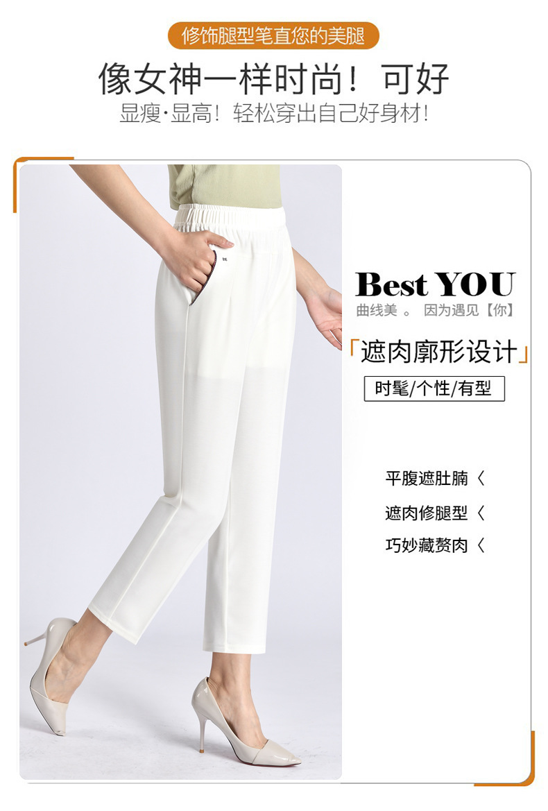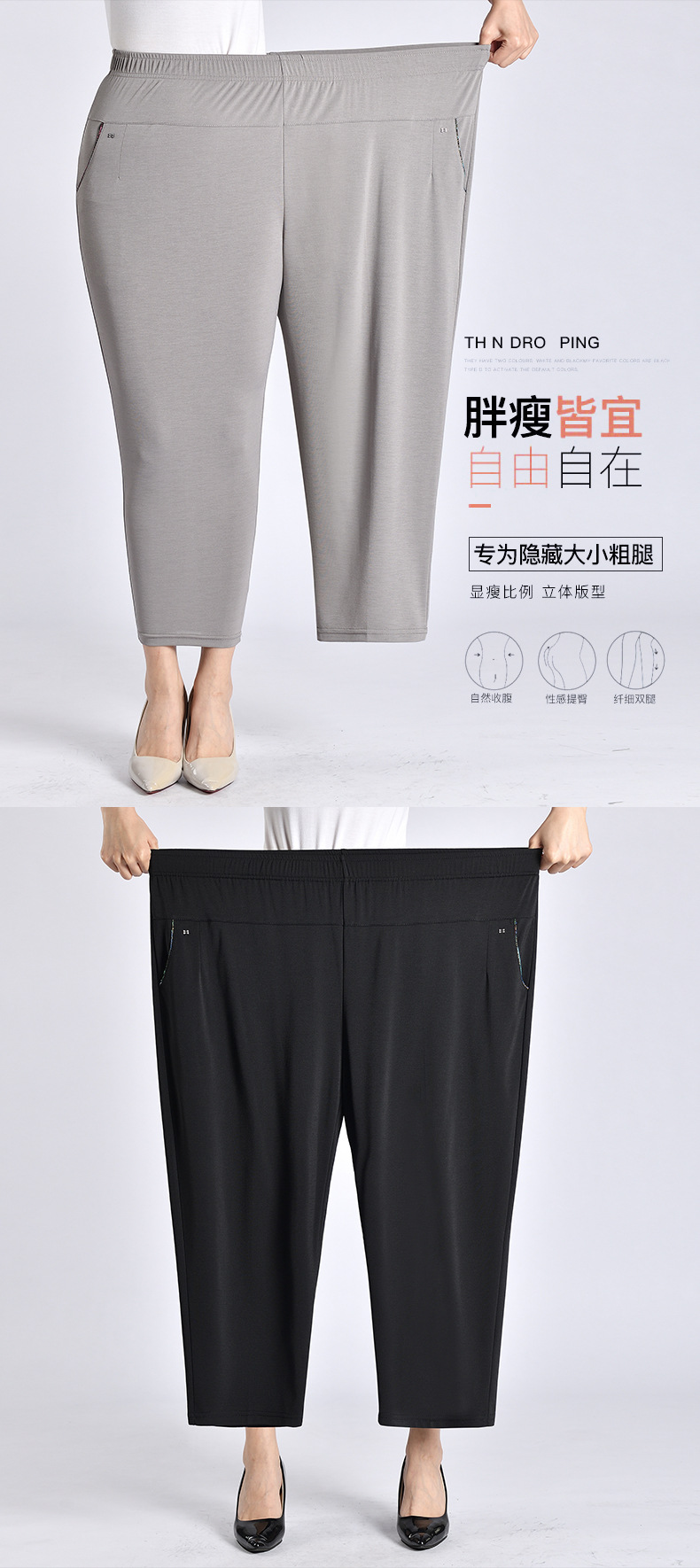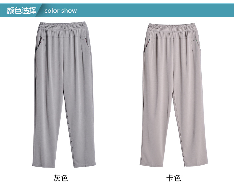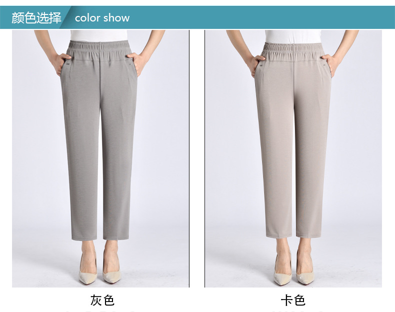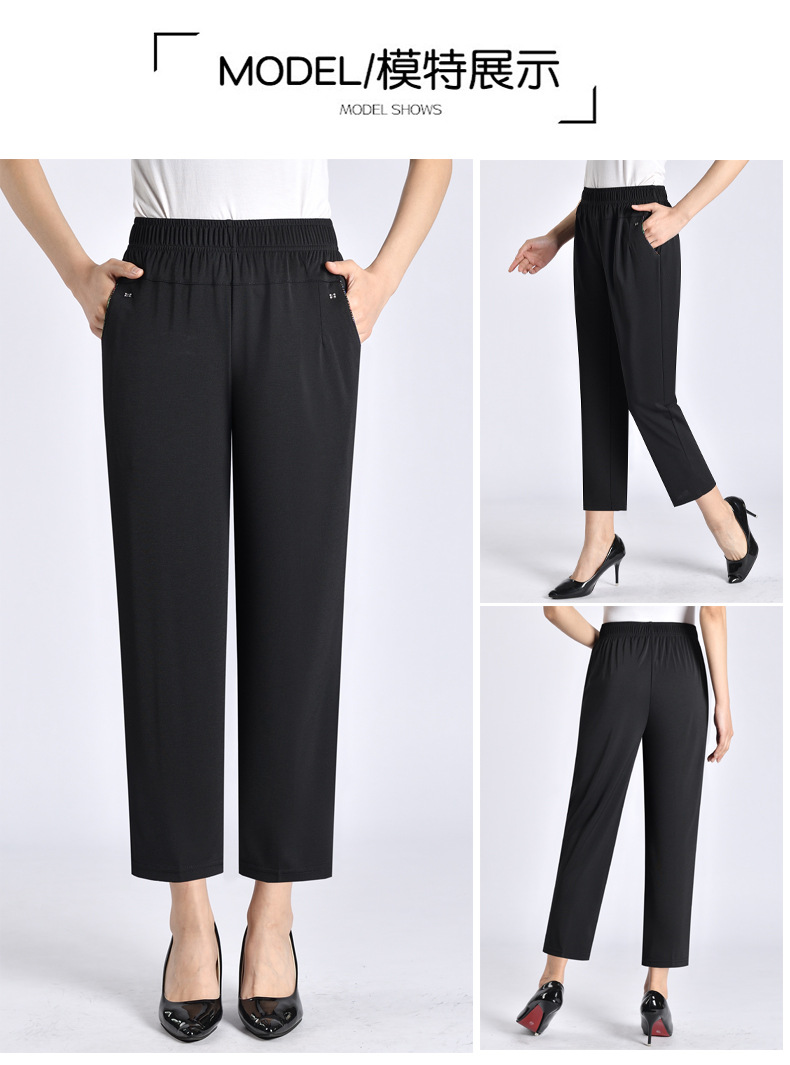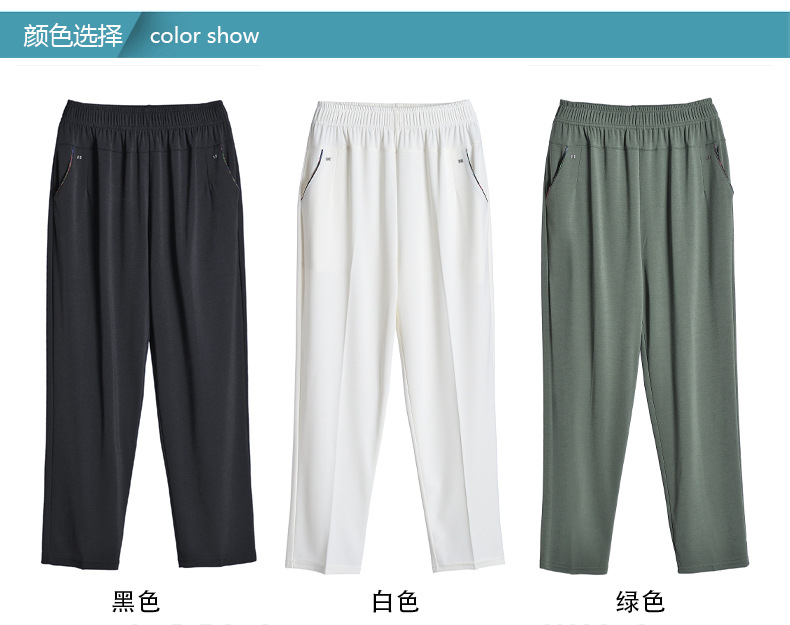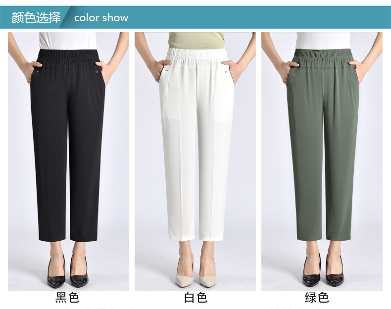 Брюки для мам, летние тонкие укороченные брюки из ледяного шелка для женщин среднего и пожилого возраста, свободные прямые брюки больших размеров для бабушек