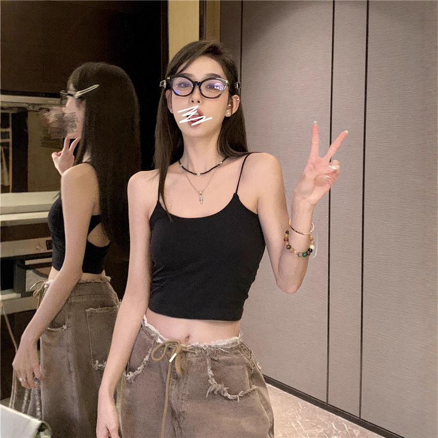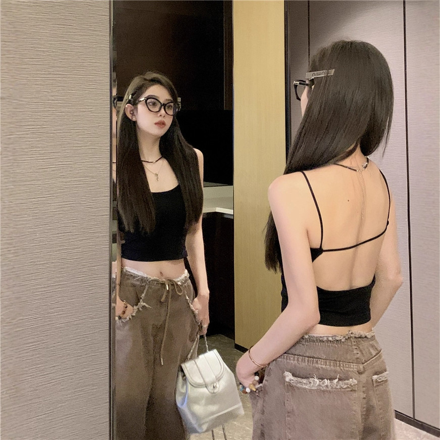 INS Популярный Универсальный однотонный камзол в стиле для девочек, женский летний 2023, новый сексуальный приталенный короткий топ с открытой спиной