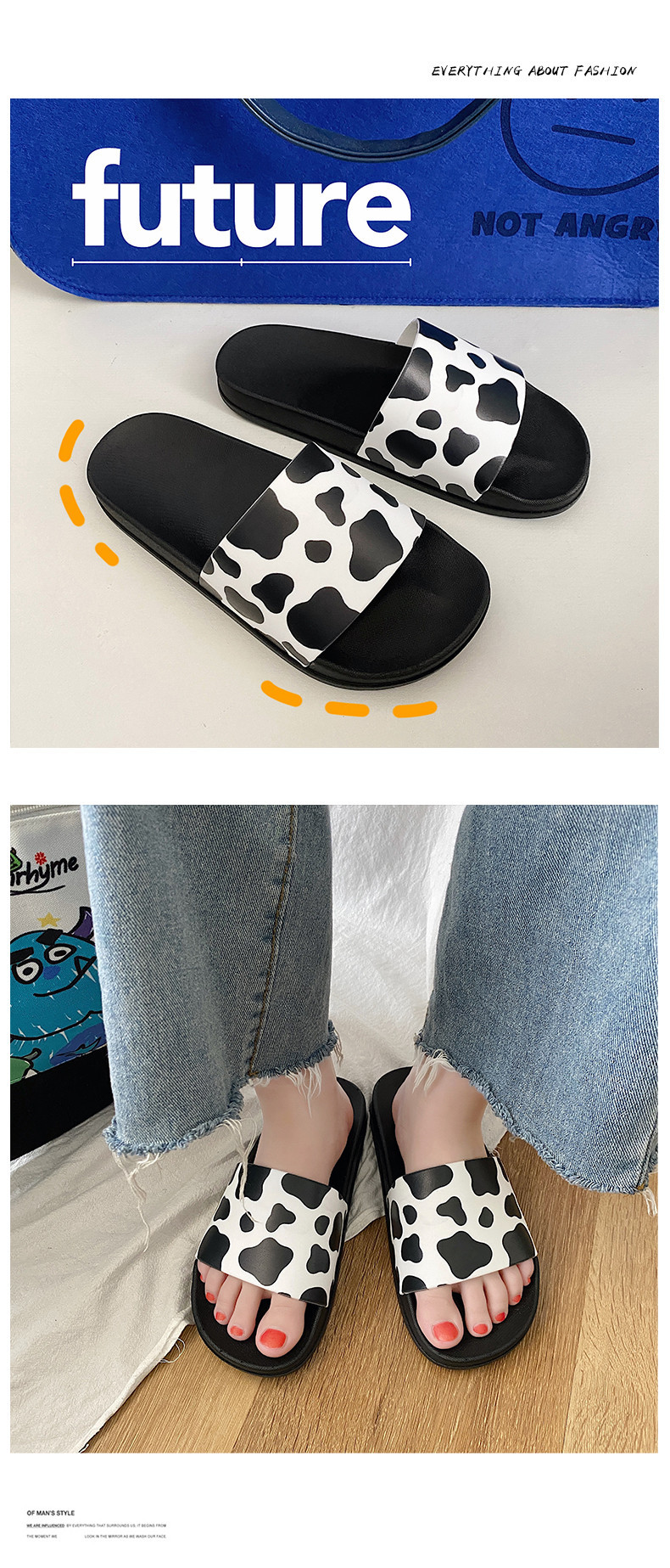 Тапочки для пар из коров, утолщенные тапочки в Корейском стиле, женские домашние и уличные летние тапочки, Нескользящие оптом