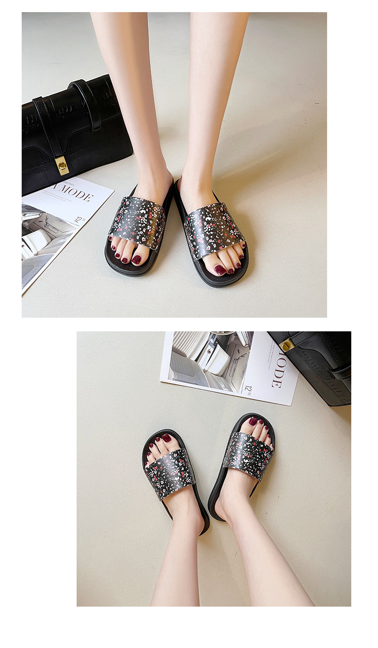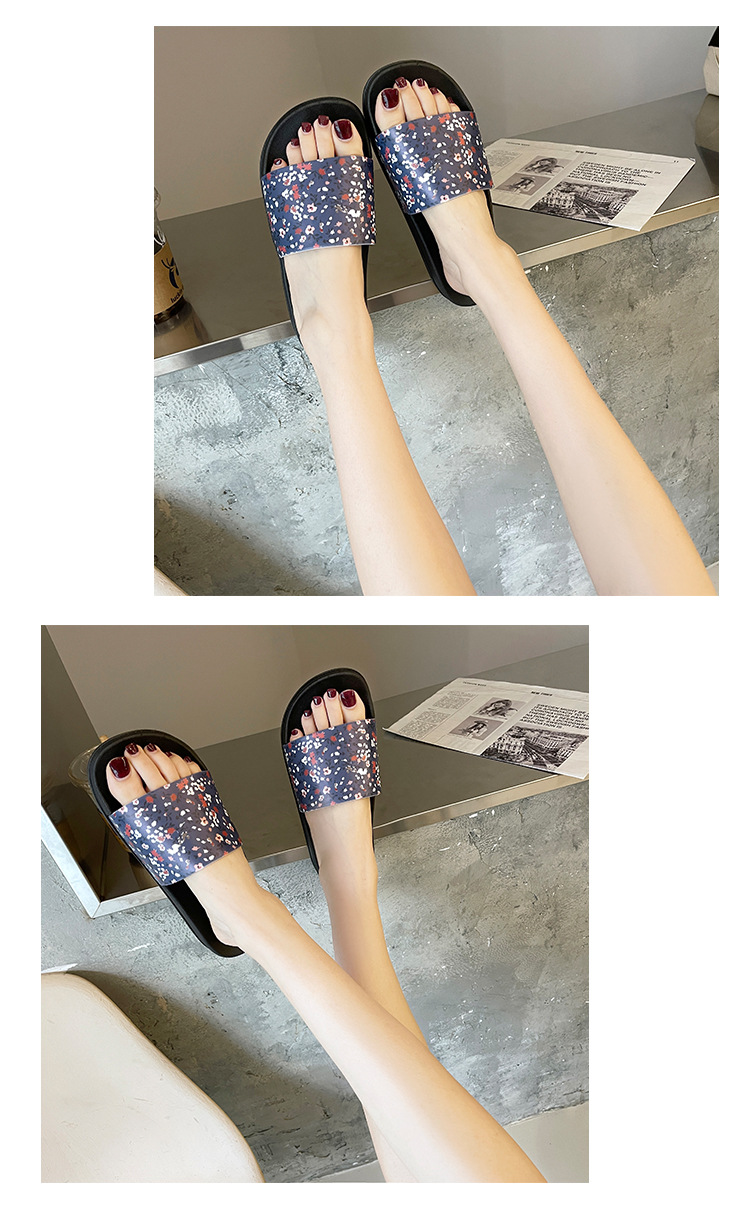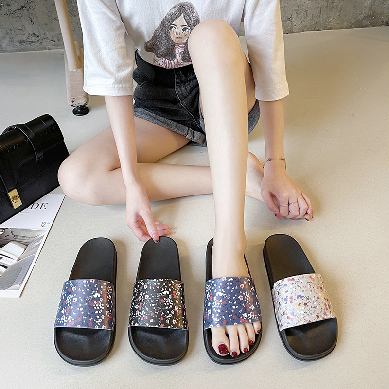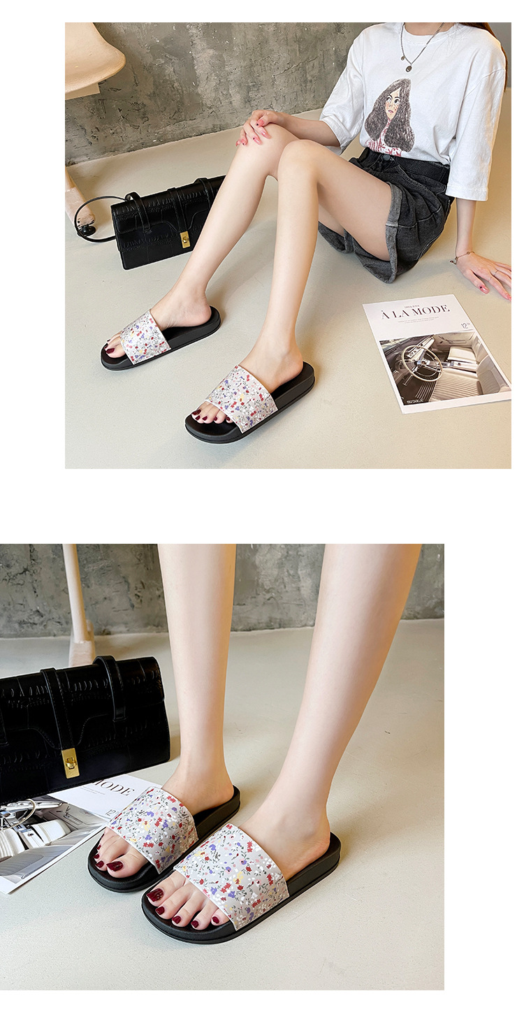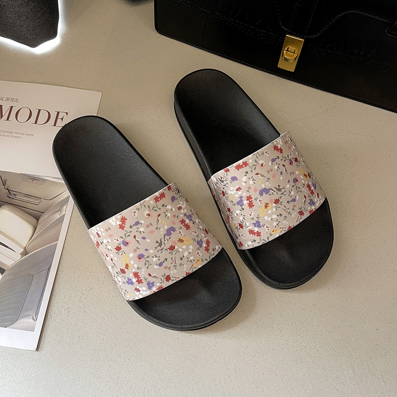 Летние тапочки с цветочным принтом для женщин, новая верхняя одежда в Корейском стиле для пар, толстая подошва, сандалии с мягкой подошвой в стиле интернет-знаменитостей, партия