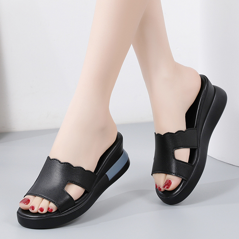 Женские летние шлепанцы для улицы, новинка 2025 года, из мягкой кожи, на толстой нескользящей подошве, повседневные пляжные сандалии-вьетнамки