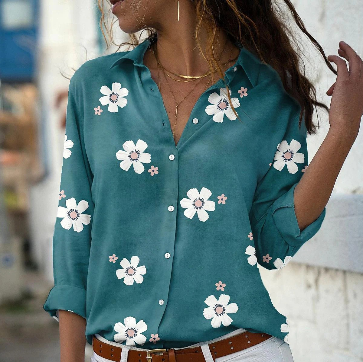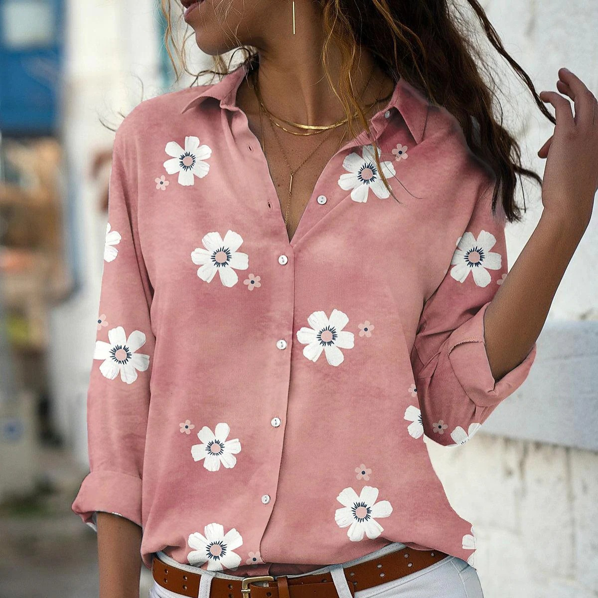 Большое количество пятен 2023, весенне-летние модные экспортные женские свободные рубашки с длинными рукавами и принтом